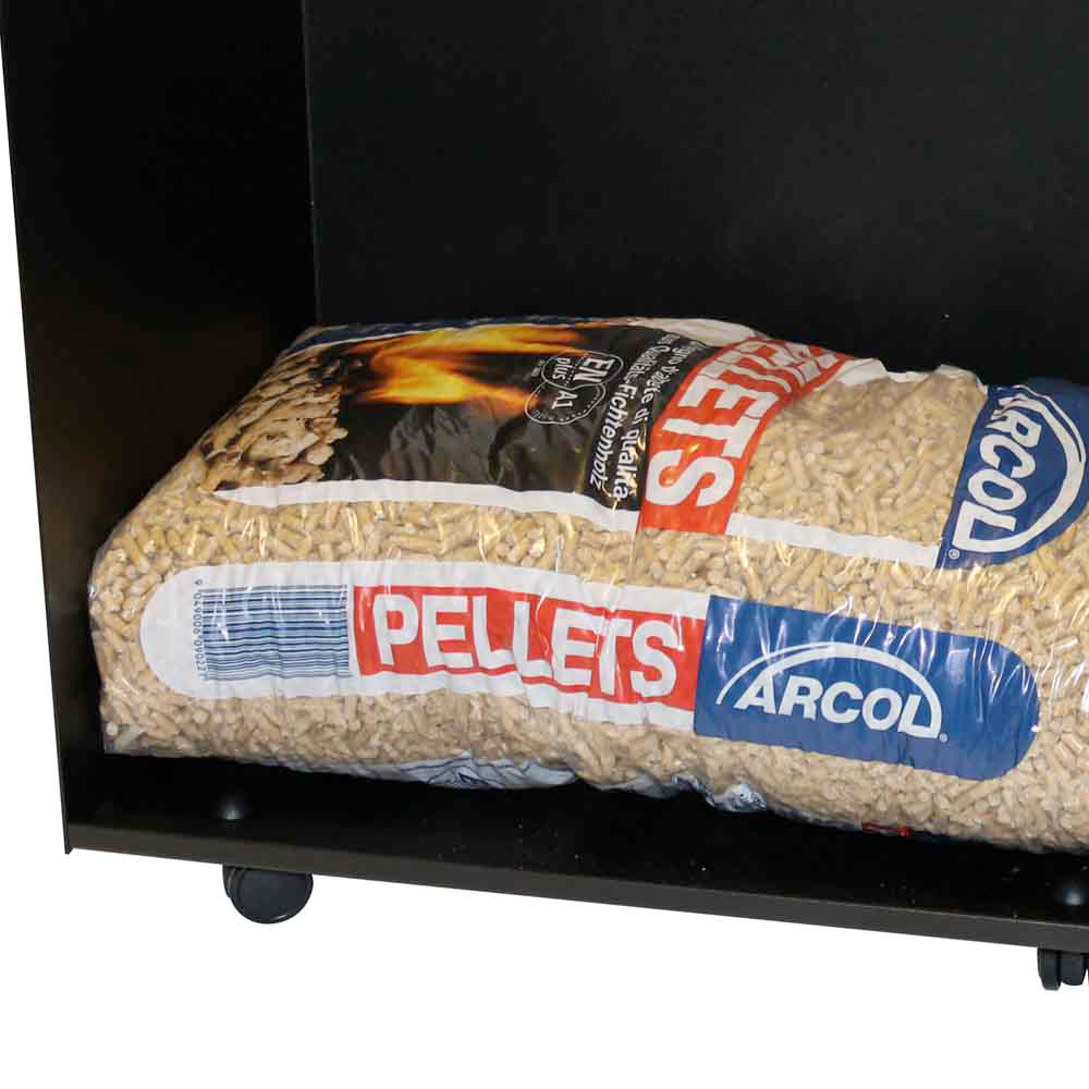 As robustas rodas sob a base permitem uma fácil movimentação do carrinho, mesmo quando carregado, facilitando o transporte dos sacos de pellets do ponto de armazenamento até à lareira ou recuperador de calor. Além disso, o carrinho é equipado com porta-ferramentas lateral , pá e vassoura , que ajudam a manter limpa a área ao redor do fogão ou lareira, ajudando a manter tudo arrumado e ao alcance.