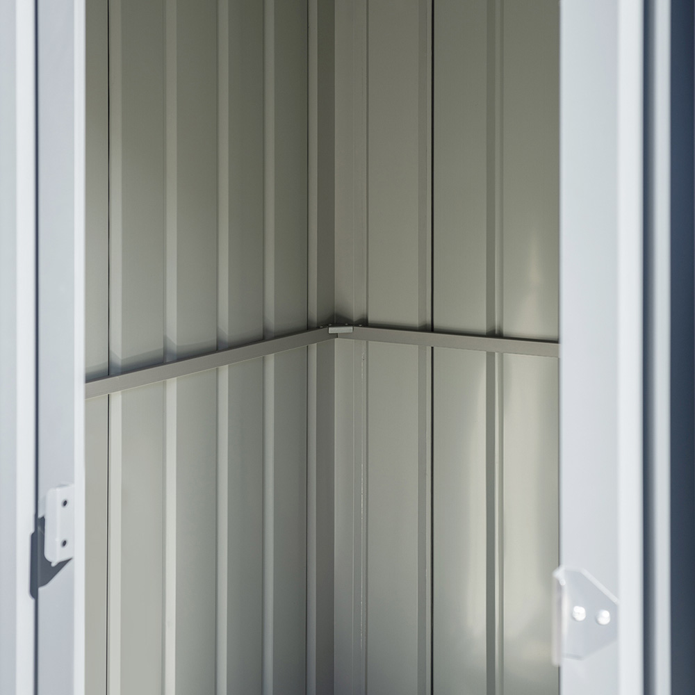 Este abrigo de jardim foi concebido para oferecer uma solução eficiente e elegante para armazenamento ao ar livre. Fabricado em chapa galvanizada de alta qualidade, é resistente à corrosão , garantindo durabilidade e proteção para suas ferramentas e equipamentos.