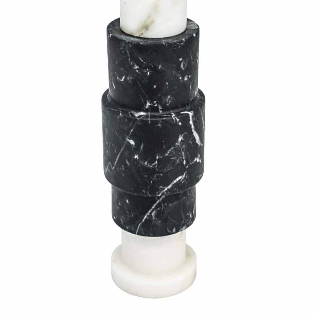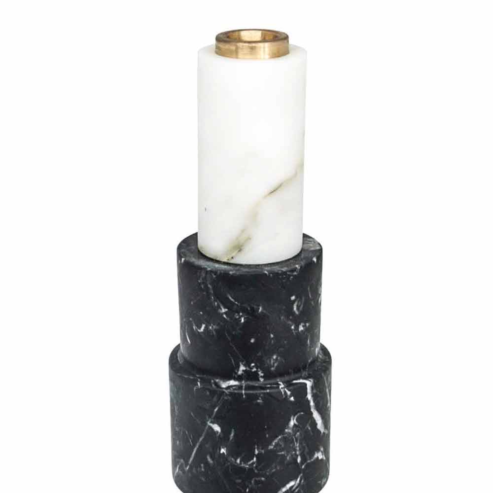 Castiçal em mármore e latão de alta qualidade . Deve ser considerada uma peça única, pois cada bloco de mármore utilizado difere dos demais pelos veios e tonalidades. O mármore branco provém da pedreira de Poggio Silvestre, fonte de mármore de primeira qualidade classificado desde o século passado, enquanto o mármore preto de Marquinia é extraído de pedreiras espanholas.