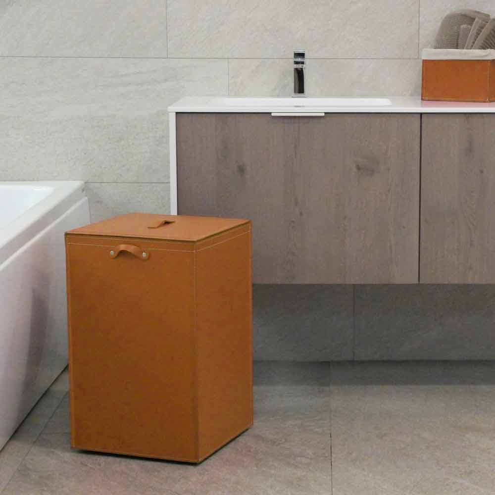 Cesto de roupa de couro com base quadrada David, fabricado na Itália