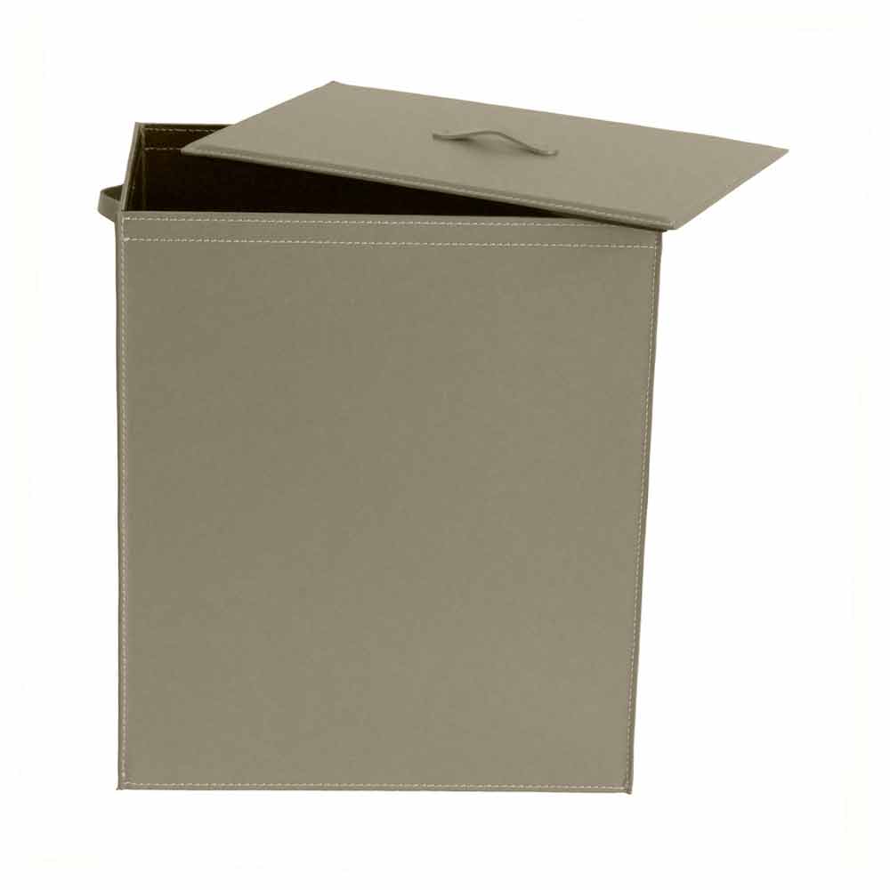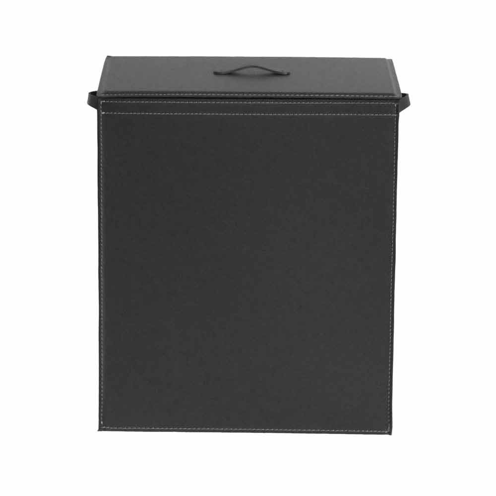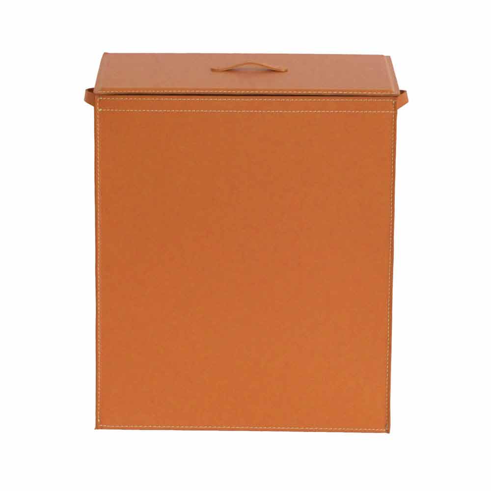Cesto de Lavanderia Retangular fabricado em couro regenerado com bolsa interior removível em puro algodão, estrutura em contraplacado coberto com pés de borracha.