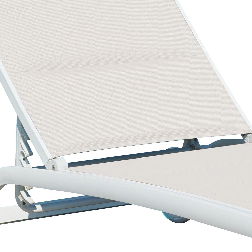 Chaise longue empilhável para exterior com assento em textilene e estrutura em alumínio.