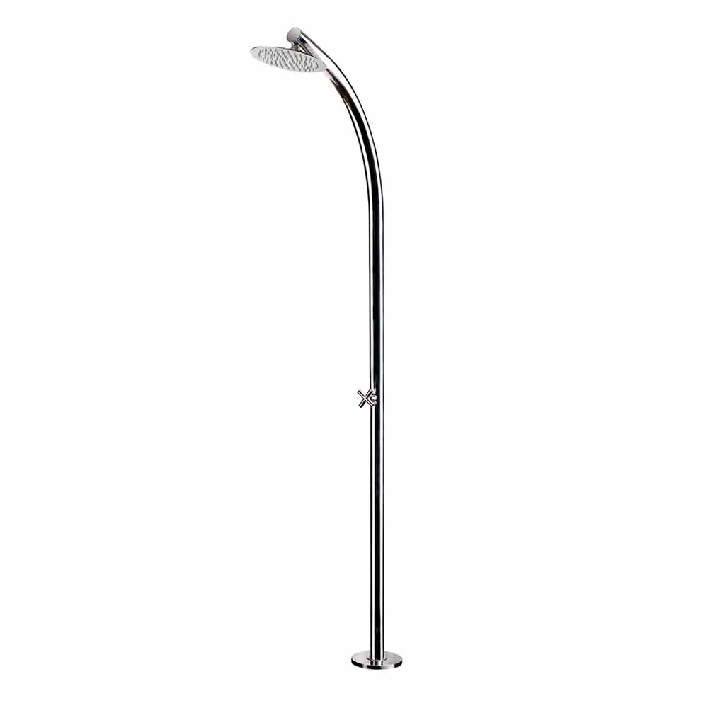 Chuveiro externo somente água fria com torneira de rosca em aço inox. Fabricado na Itália.