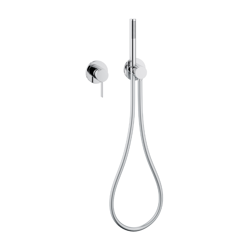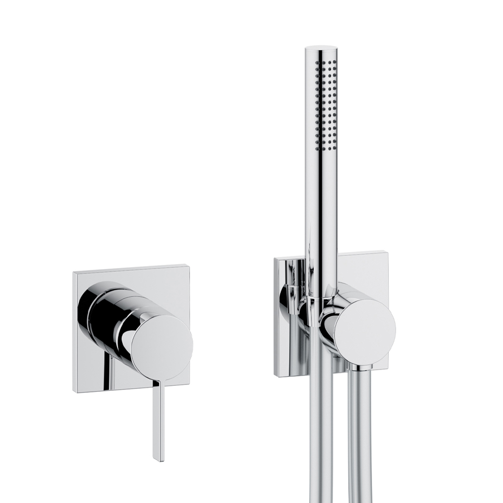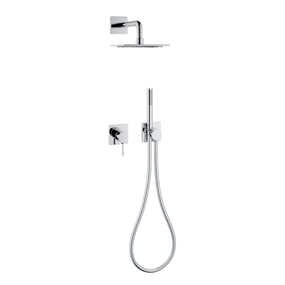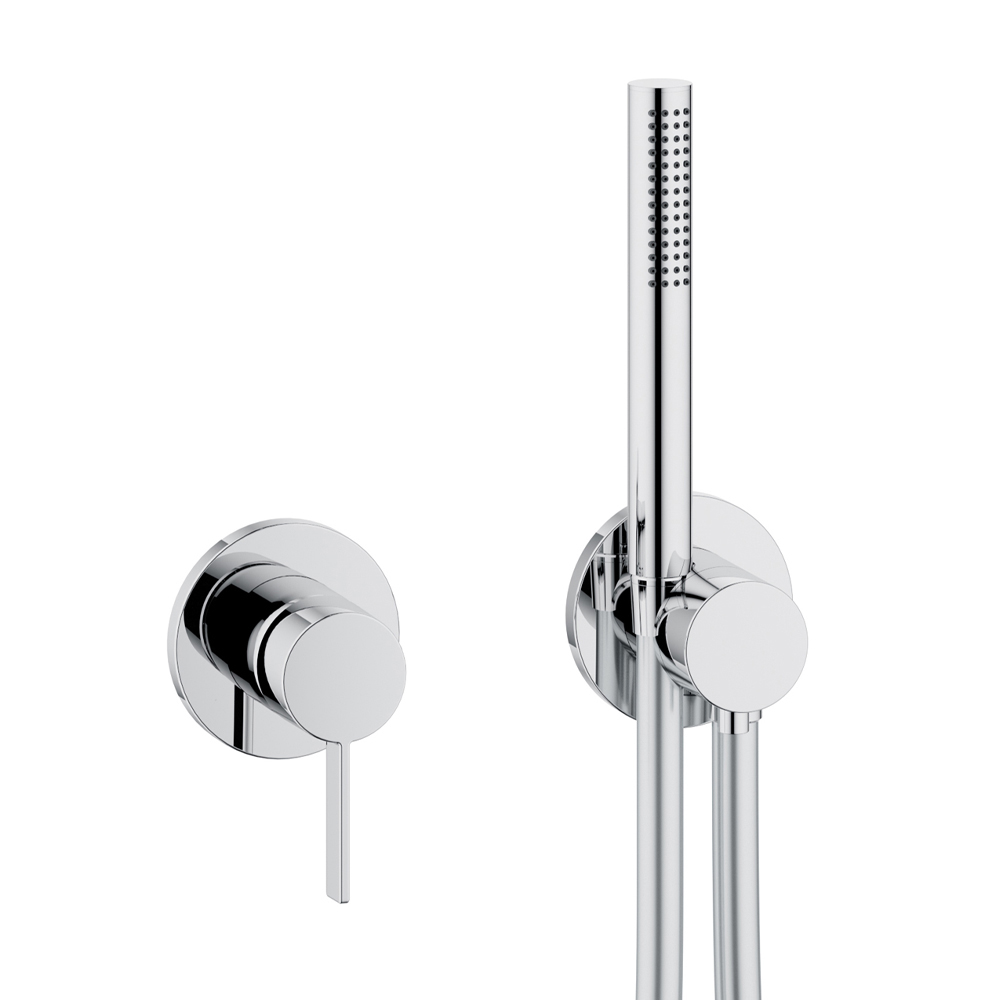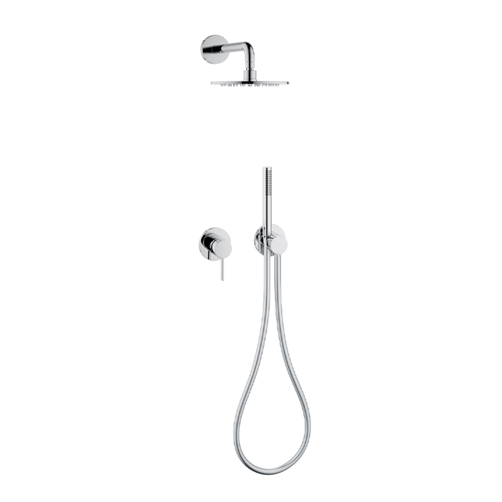Conjunto de duche com misturador monocomando mínimo e cabeça de chuveiro.