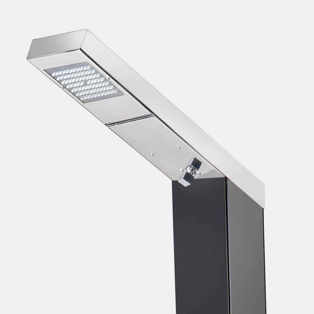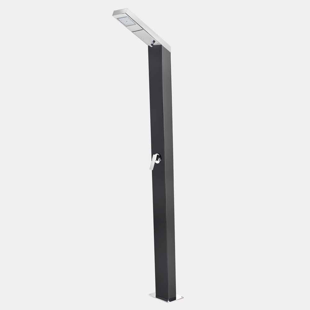 Este produto expressa a elegância de suas formas e linhas, aliada a um alto potencial técnico, em qualquer ambiente externo, criando assim a coluna de chuveiro perfeita para áreas externas, capaz de satisfazer necessidades estéticas e funcionais. Os dois jatos, chuva e cascata, oferecem uma maravilhosa massagem relaxante, ajudando a criar um pequeno recanto dedicado ao relaxamento em ambientes externos, como resorts de praia e instalações turísticas, mas também em ambientes privados, como piscinas e jardins. Sua estrutura de seção retangular permite uma grande superfície de absorção de calor, conseguindo assim manter a água aquecida durante todo o dia. Para isso, também é essencial posicionar o chuveiro em uma área aberta e particularmente ensolarada para permitir que os raios solares aqueçam melhor a água dentro do reservatório.