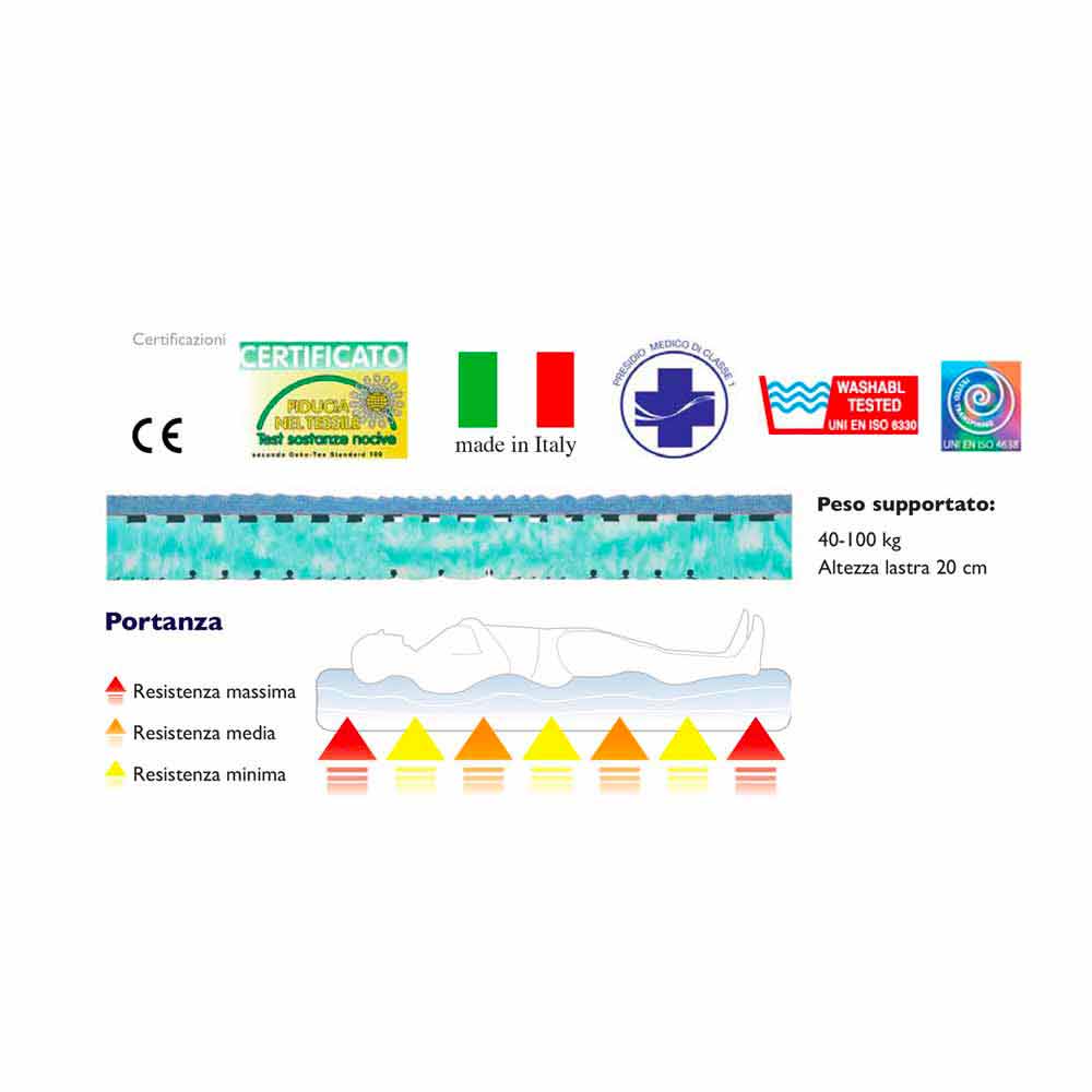 Por este motivo, recomendamos a utilização deste colchão, certificado como dispositivo médico de classe I , combinado com uma capa especialmente concebida com caixa topper integrada.