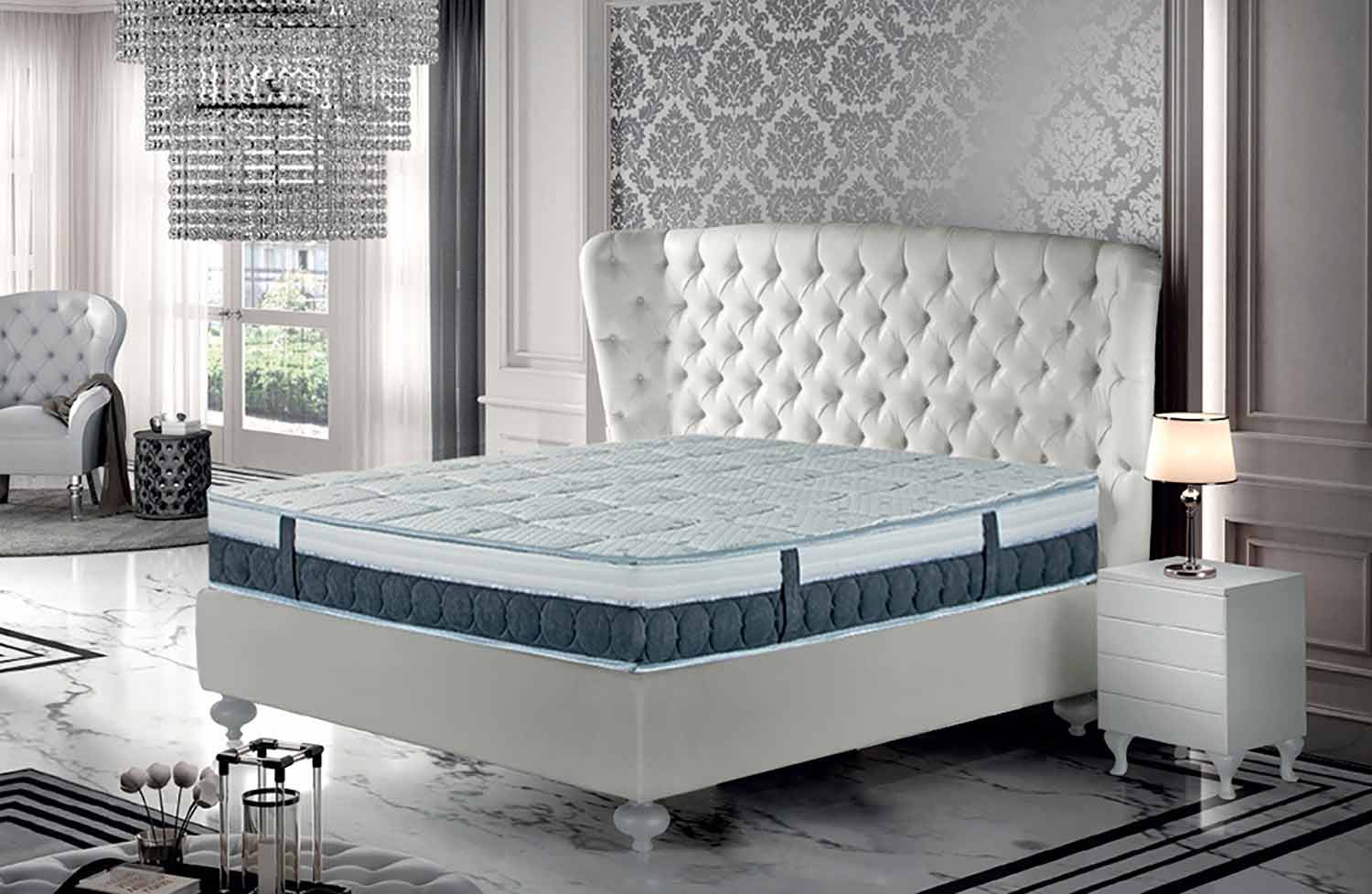 Um colchão e meio em memória Aloe Feel e Carbon Resistex, 25 cm de altura, removível e com revestimento acolchoado, feito à mão na Itália.