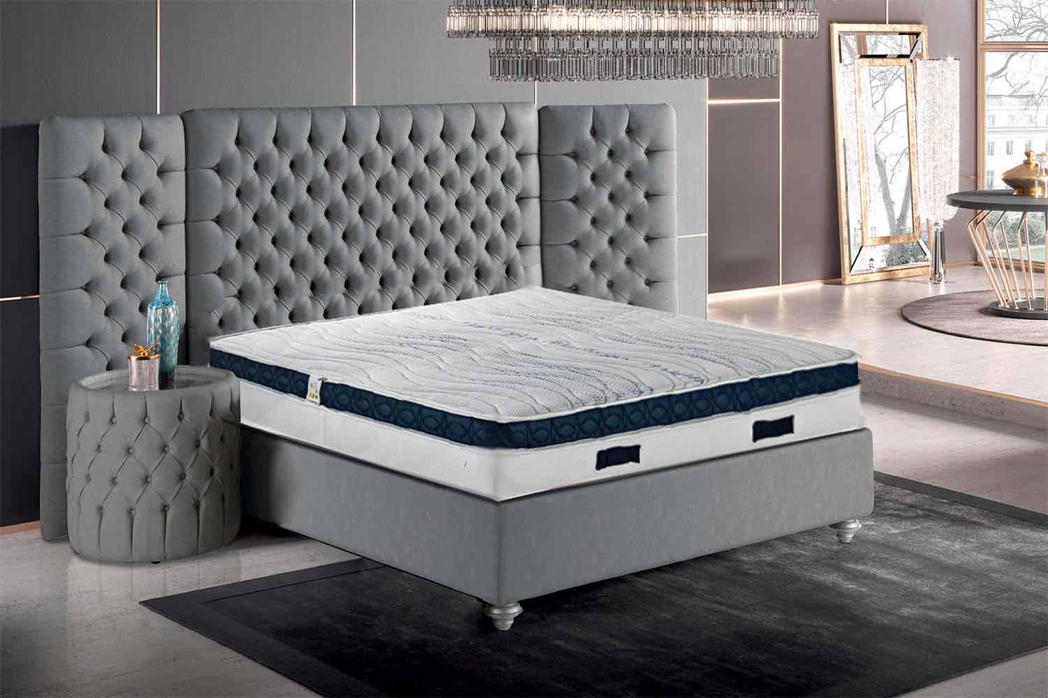 Colchão duplo Aloe Feel com memória de 22 cm de altura, com estofamento em lã e tecido artesanal na Itália.