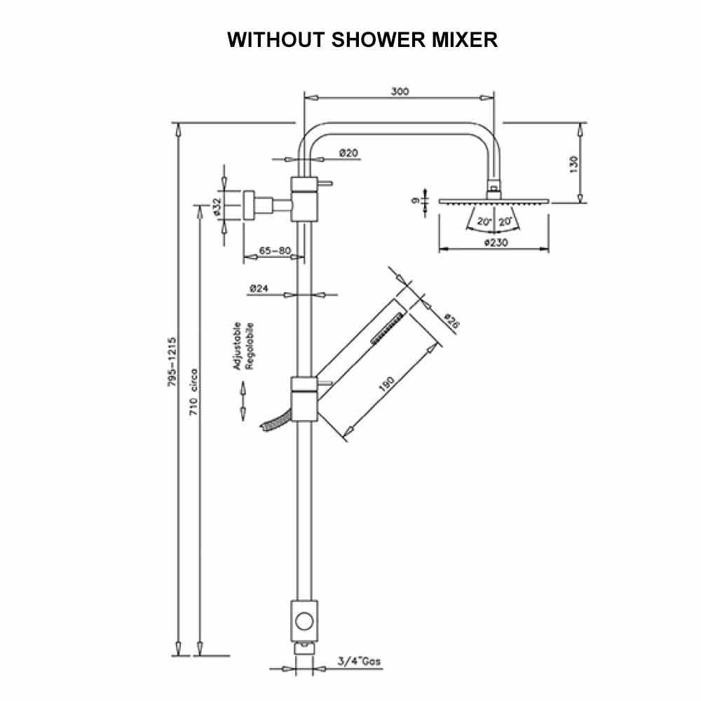 - chuveiro redondo Ø 200 mm.