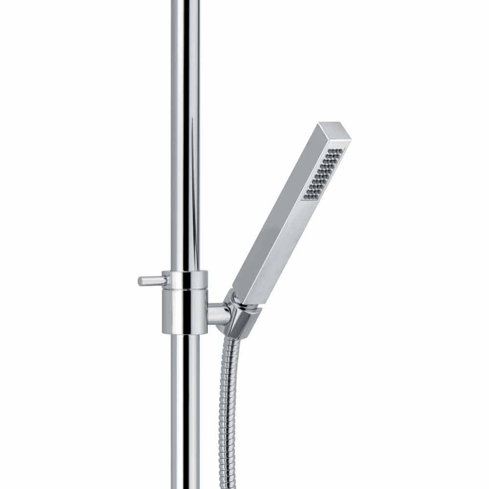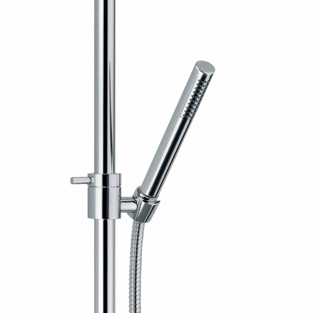 funcionalidade , obtendo-se assim uma coluna de duche tão bonita e requintada à vista como prática e fácil de utilizar. O suporte deslizante permite ajustar a altura do chuveiro de mão, enquanto a mangueira de 150 cm permite um uso totalmente manejável e confortável.
