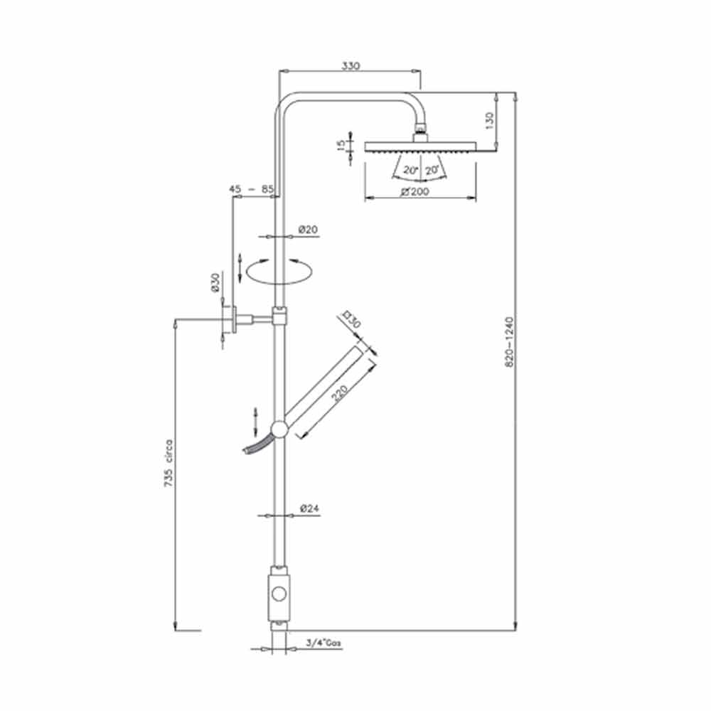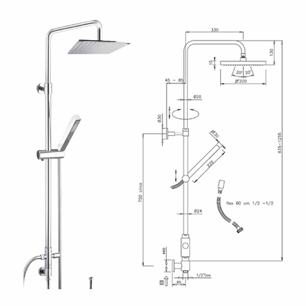 coluna de duche em latão significa desfrutar de agradáveis momentos de relaxamento, ideais para libertar-se da tensão e do stress acumulados ao longo do dia. Esta peça combina características estéticas, como um design atraente e moderno, com características funcionais essenciais para