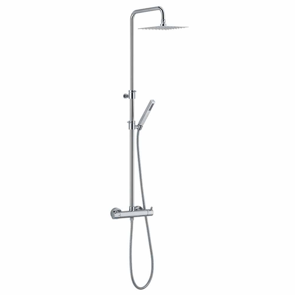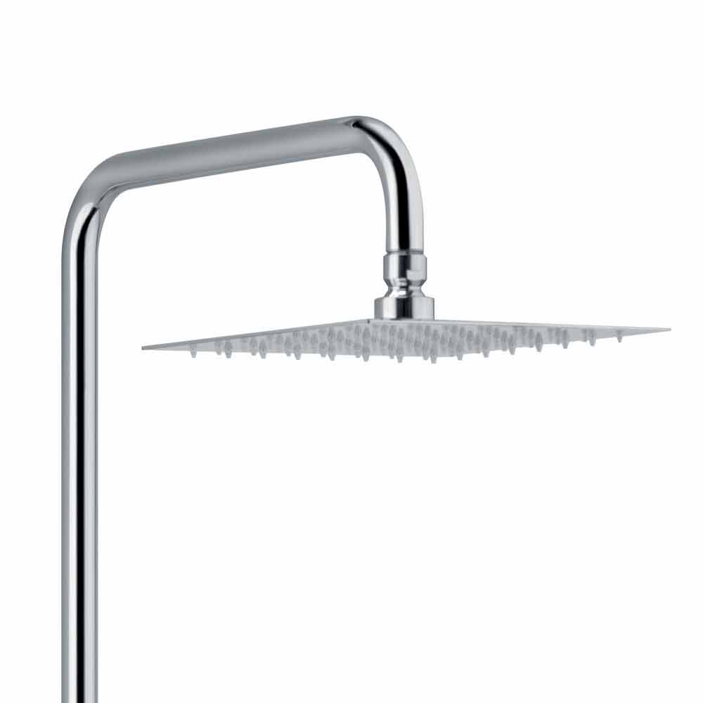 - Chuveiro quadrado de aço inoxidável de 200x200 mm (equipado com válvula de segurança para escoamento da água);