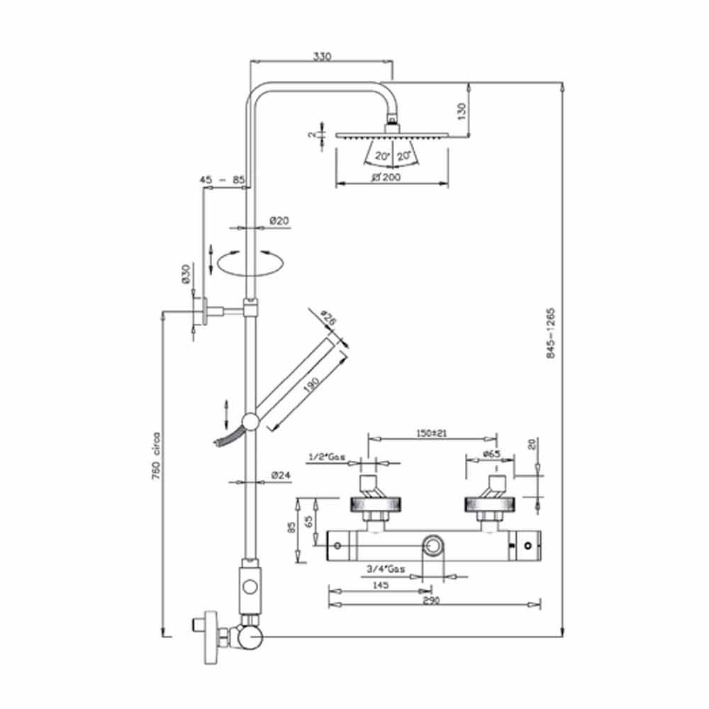 Coluna de duche em latão cromado, aço e ABS design moderno Fabricado na Itália.