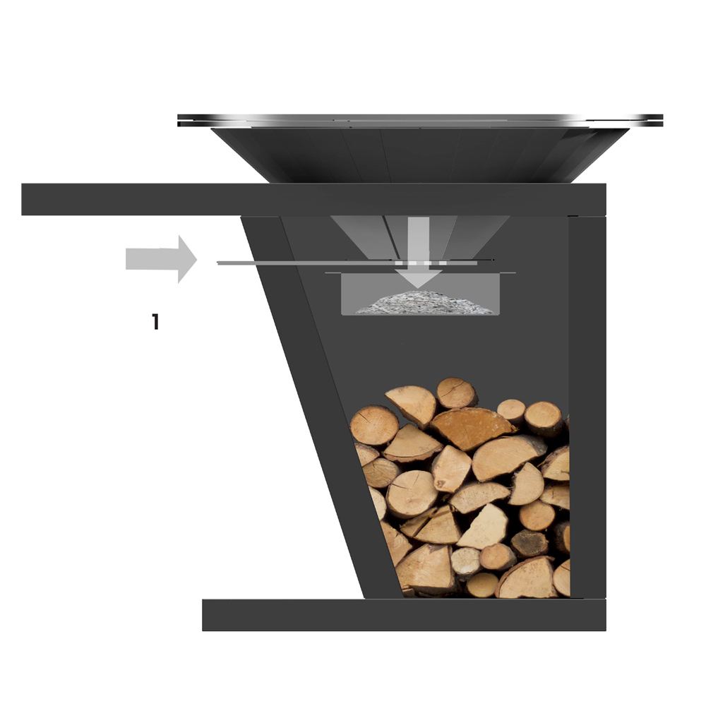 espaçoso compartimento embutido para queima de madeira, ele garantirá que você mantenha sempre o fogo bonito vivo sem sair do local de trabalho.