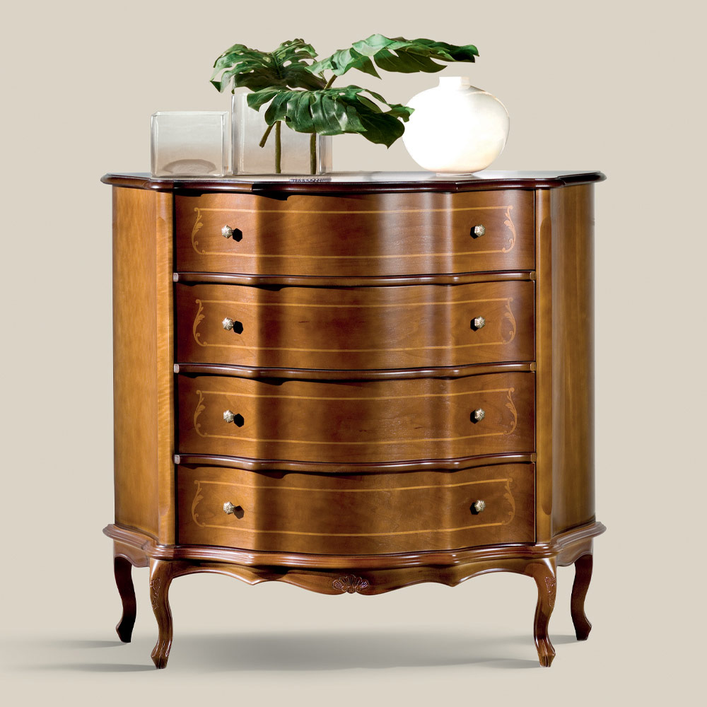 Cômoda 3 ou 4 gavetas em madeira incrustada de luxo Made in Italy.