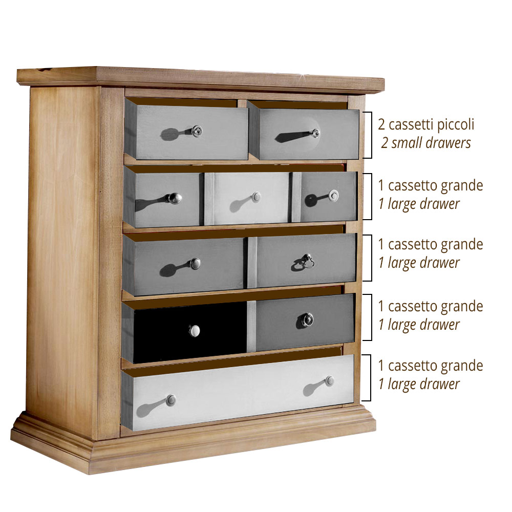 O design das gavetas é puramente estético. Começando por cima existem 2 gavetas pequenas seguidas de 4 gavetas grandes. Contacte-nos para um orçamento ou informações através do formulário "