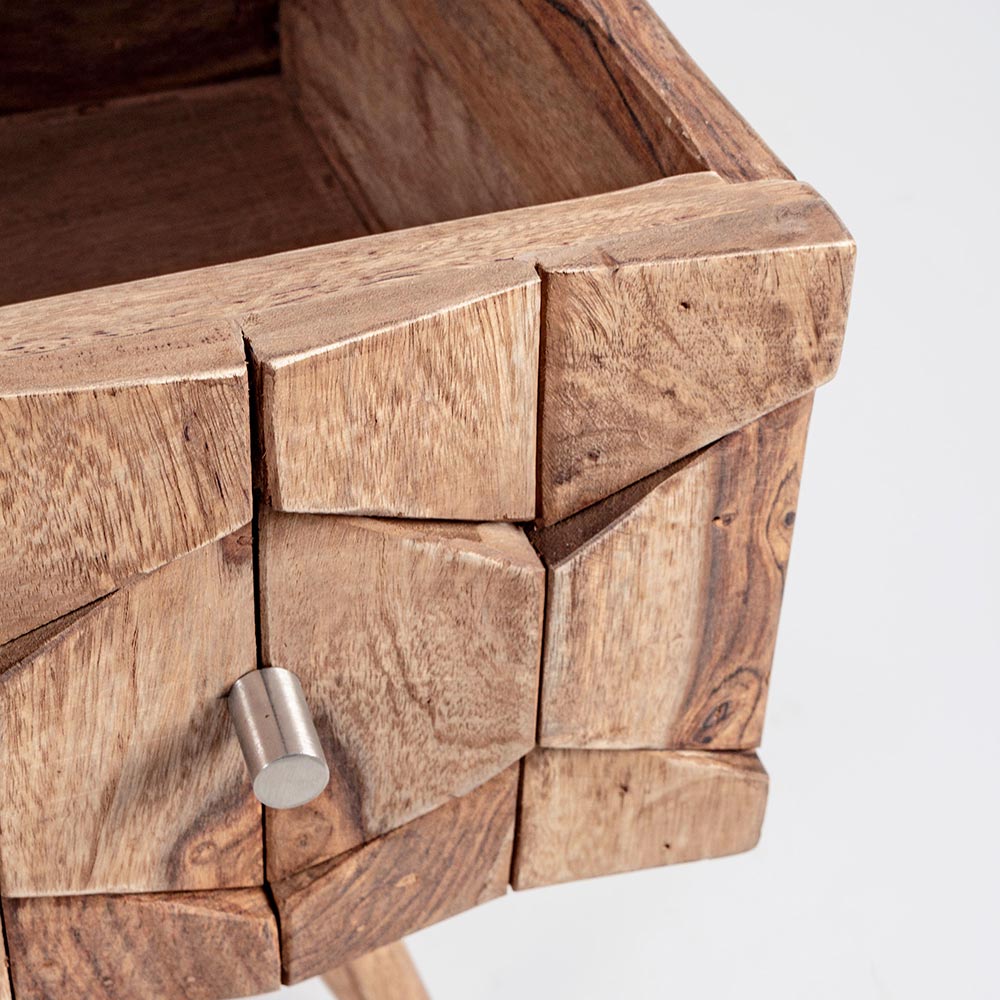 Cômoda em sheesham com 3 gavetas de desenho étnico.