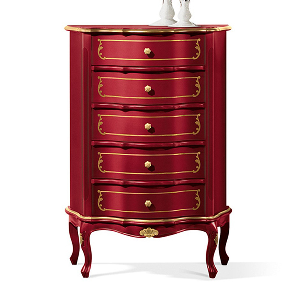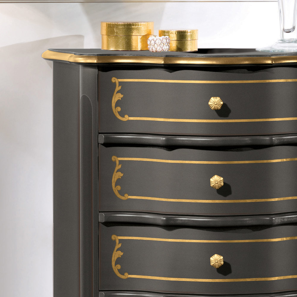 Cômoda de quarto com 5 gavetas em madeira clássica Made in Italy.