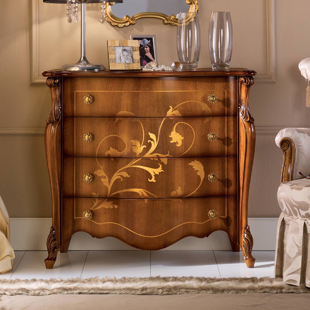 Cômoda de estilo clássico em madeira de nogueira Bassano com 4 gavetas práticas e espaçosas e elegantes embutidos. Um complemento único e refinado, totalmente feito na Itália por mestres artesãos , mestres da arte que finalizam cada complemento com sabedoria e gosto pela elegância. A produção é realizada com materiais nobres , realizando o trabalho à mão com o máximo cuidado e profissionalismo que distingue os produtos Made in Italy .