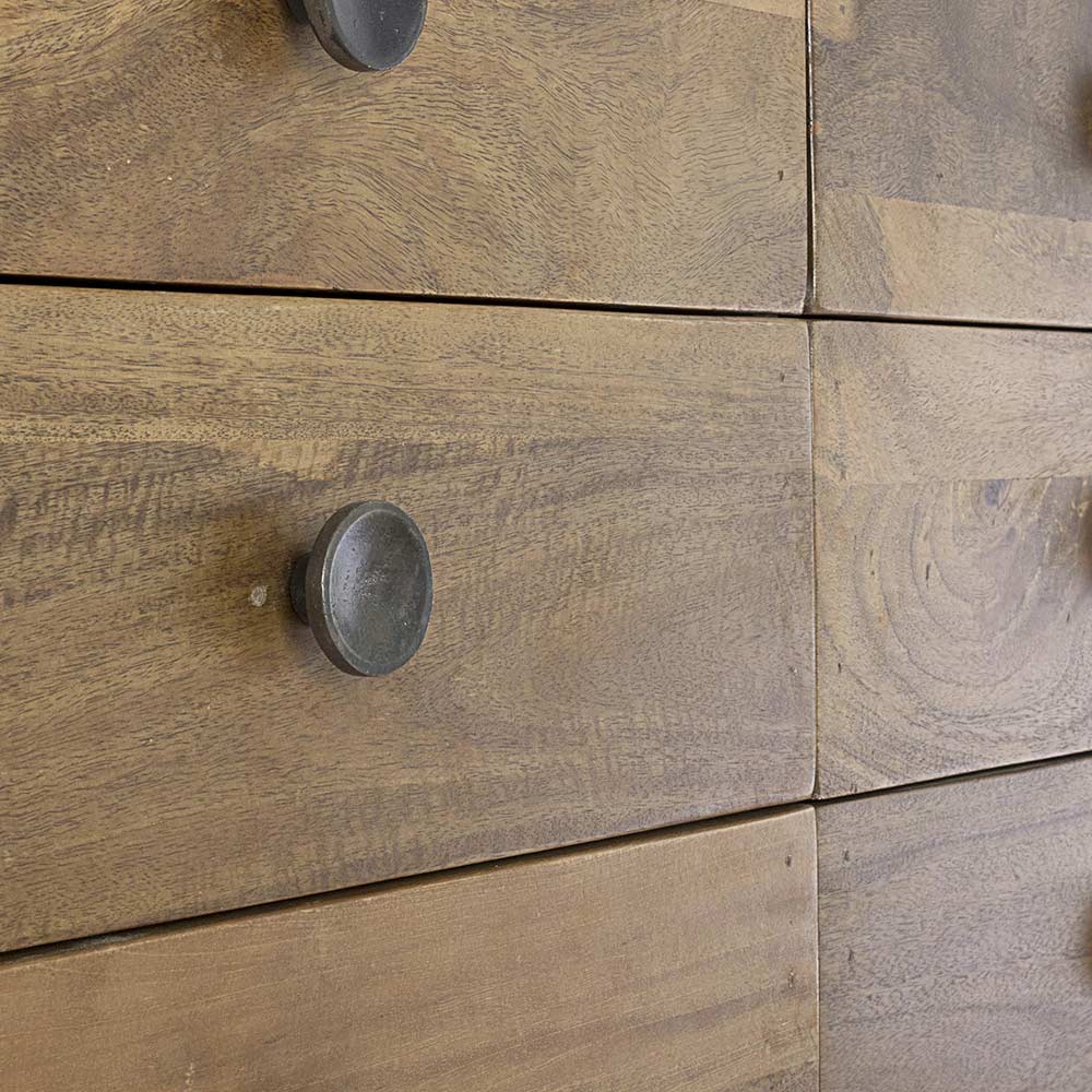 Cômoda em madeira manga com 6 gavetas de desenho vintage.