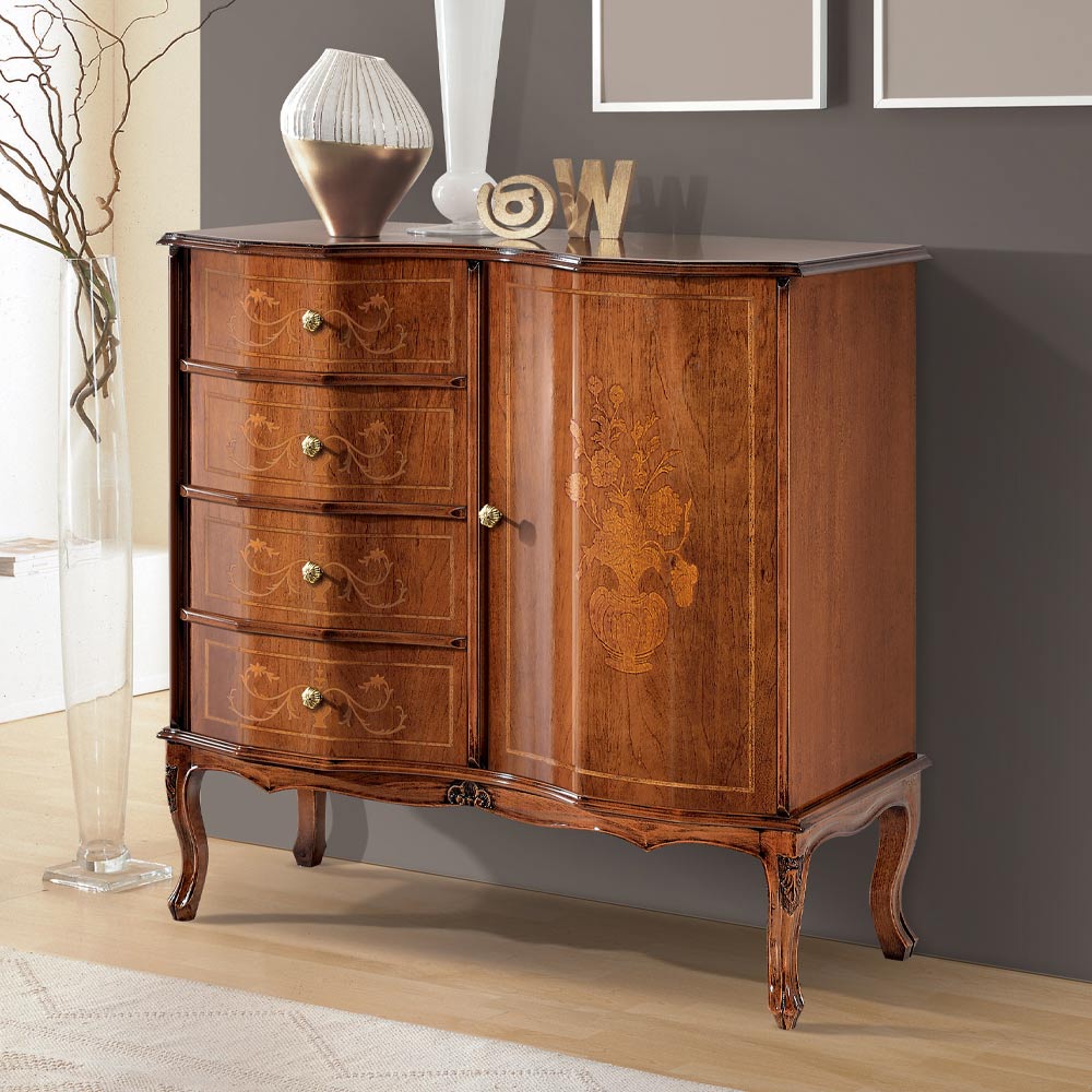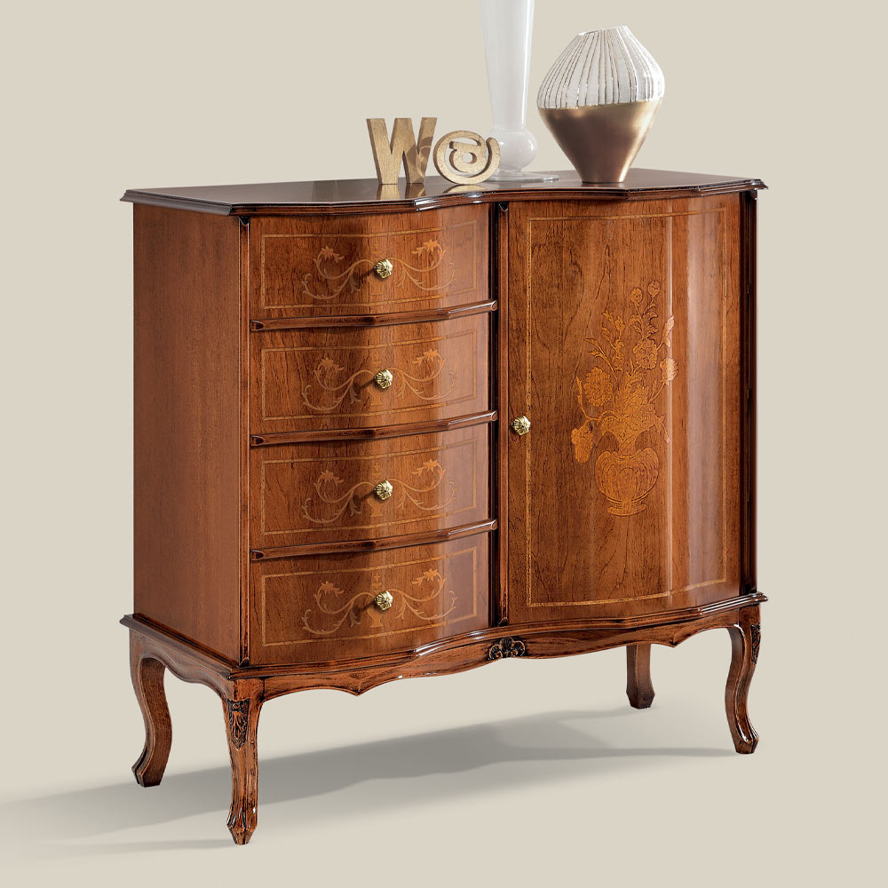 Cômoda estilo clássico com porta e 4 gavetas Made in Italy.
