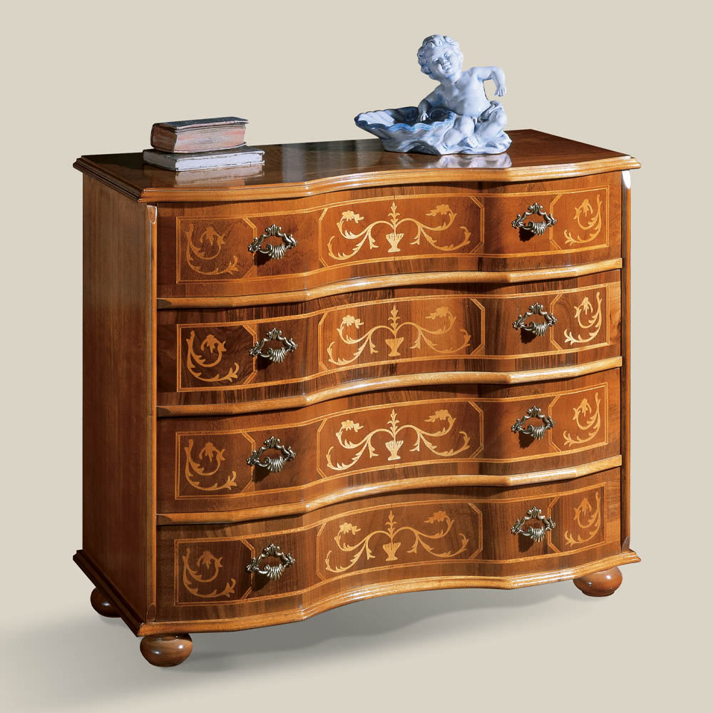 Cômoda de estilo clássico em madeira com 4 ou 5 gavetas Made in Italy.