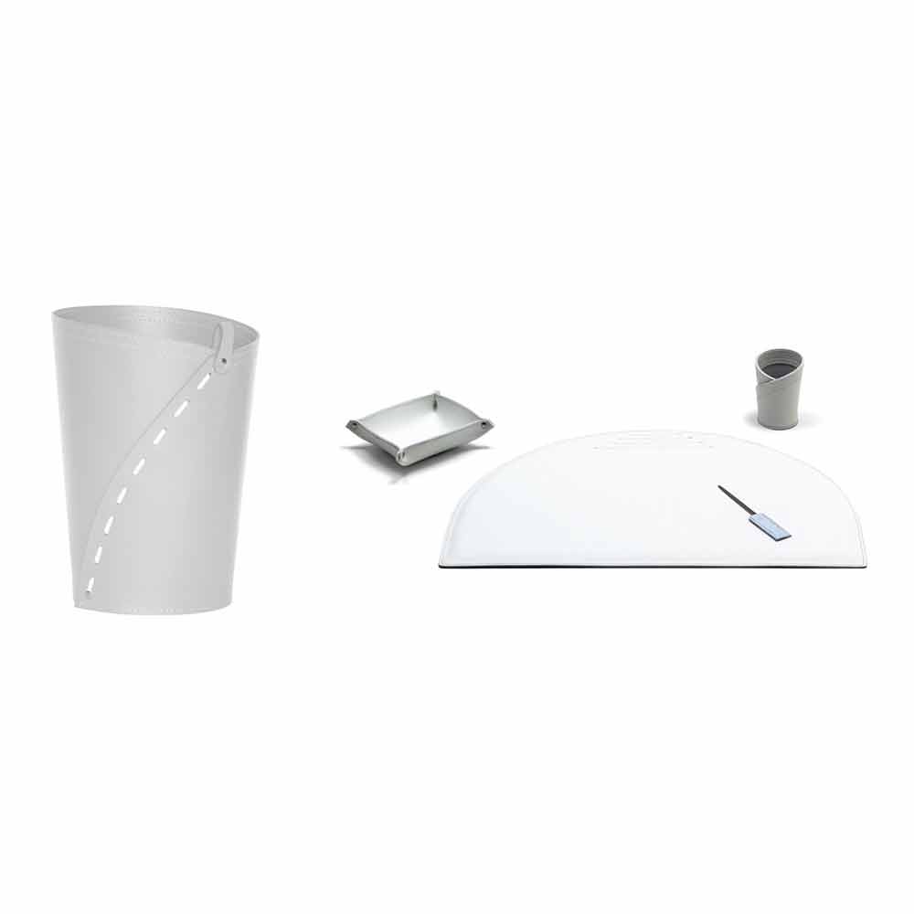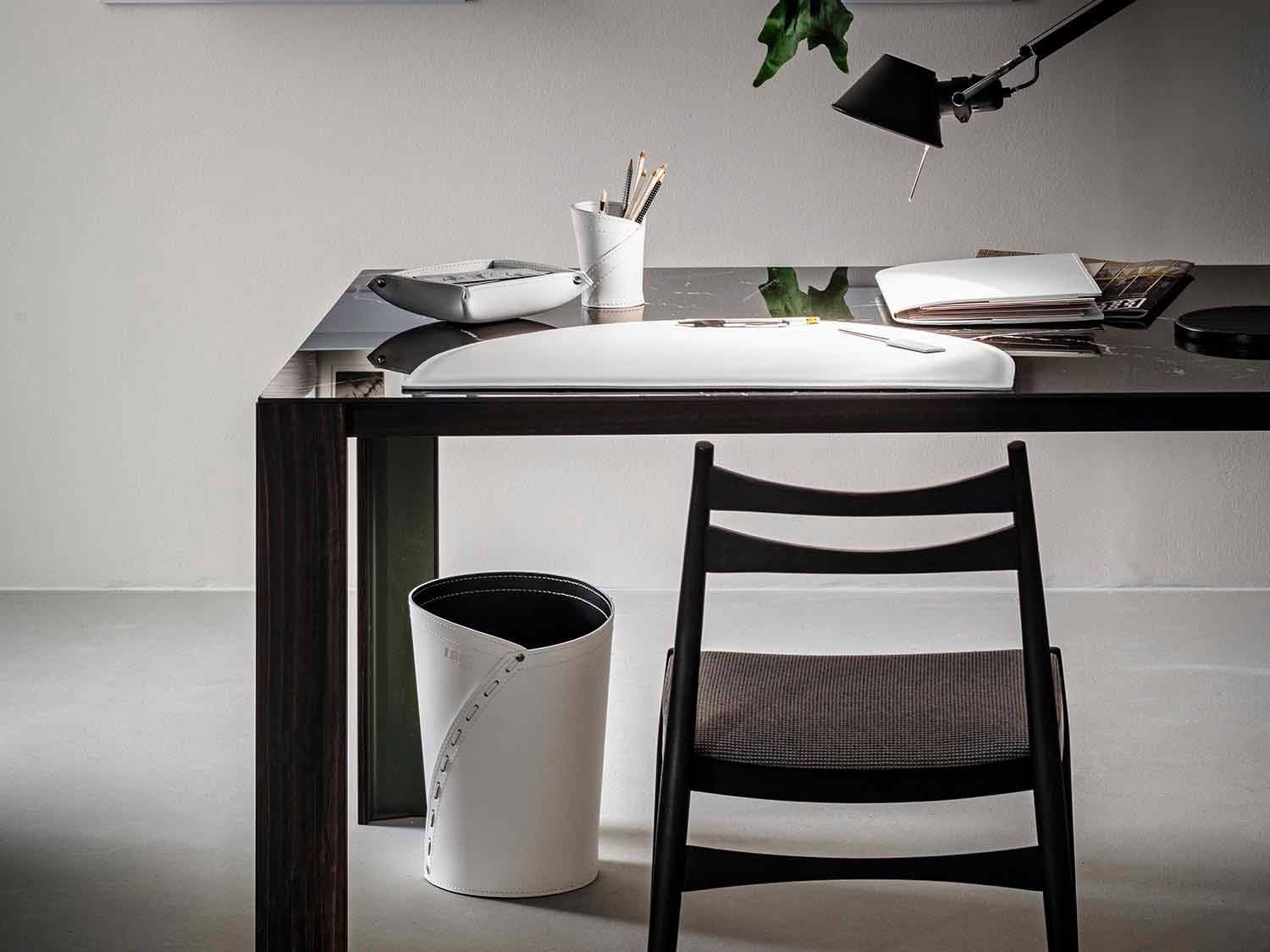 Composição do escritório de design em couro regenerado artesanal na Itália.