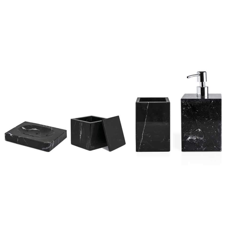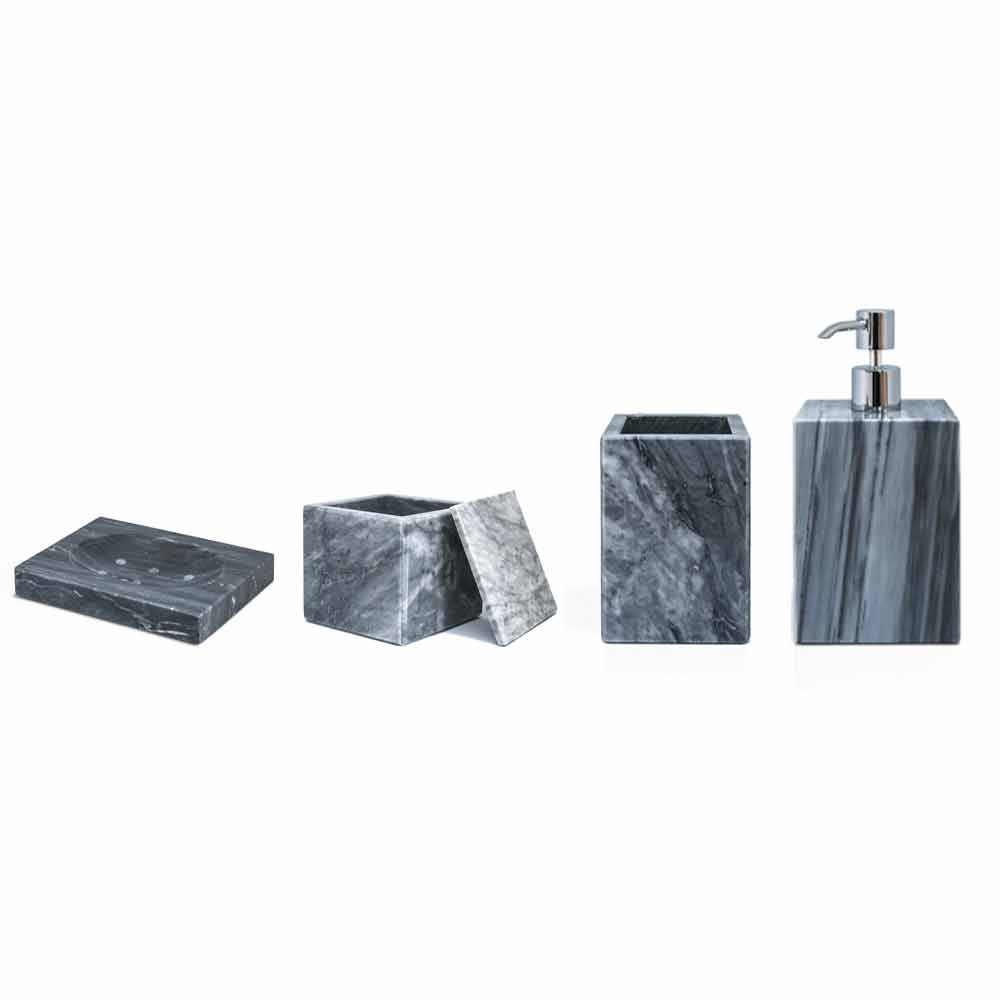 Maravilhosa composição de acessórios para banheiro, que inclui: saboneteira, saboneteira, porta-escova de dentes e recipiente com tampa, e está disponível em 3 versões.