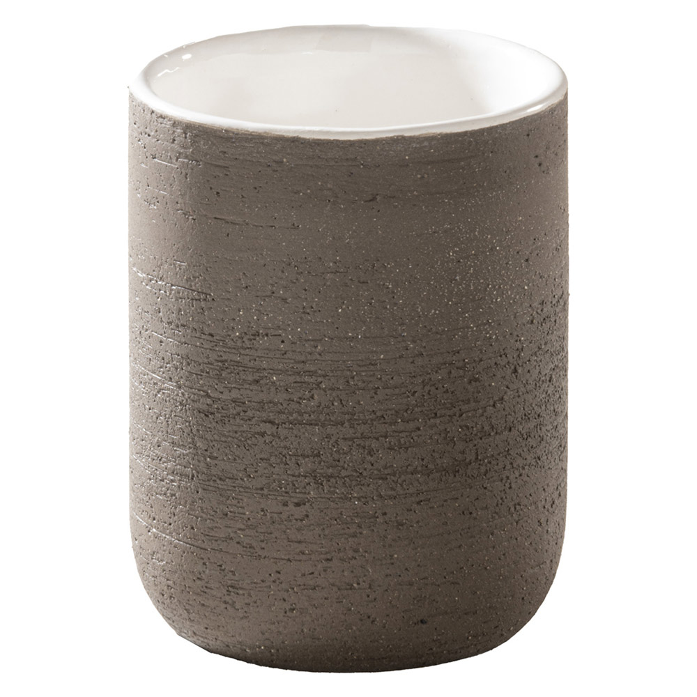 barro refratário e terra escura com interior esmaltado branco brilhante.