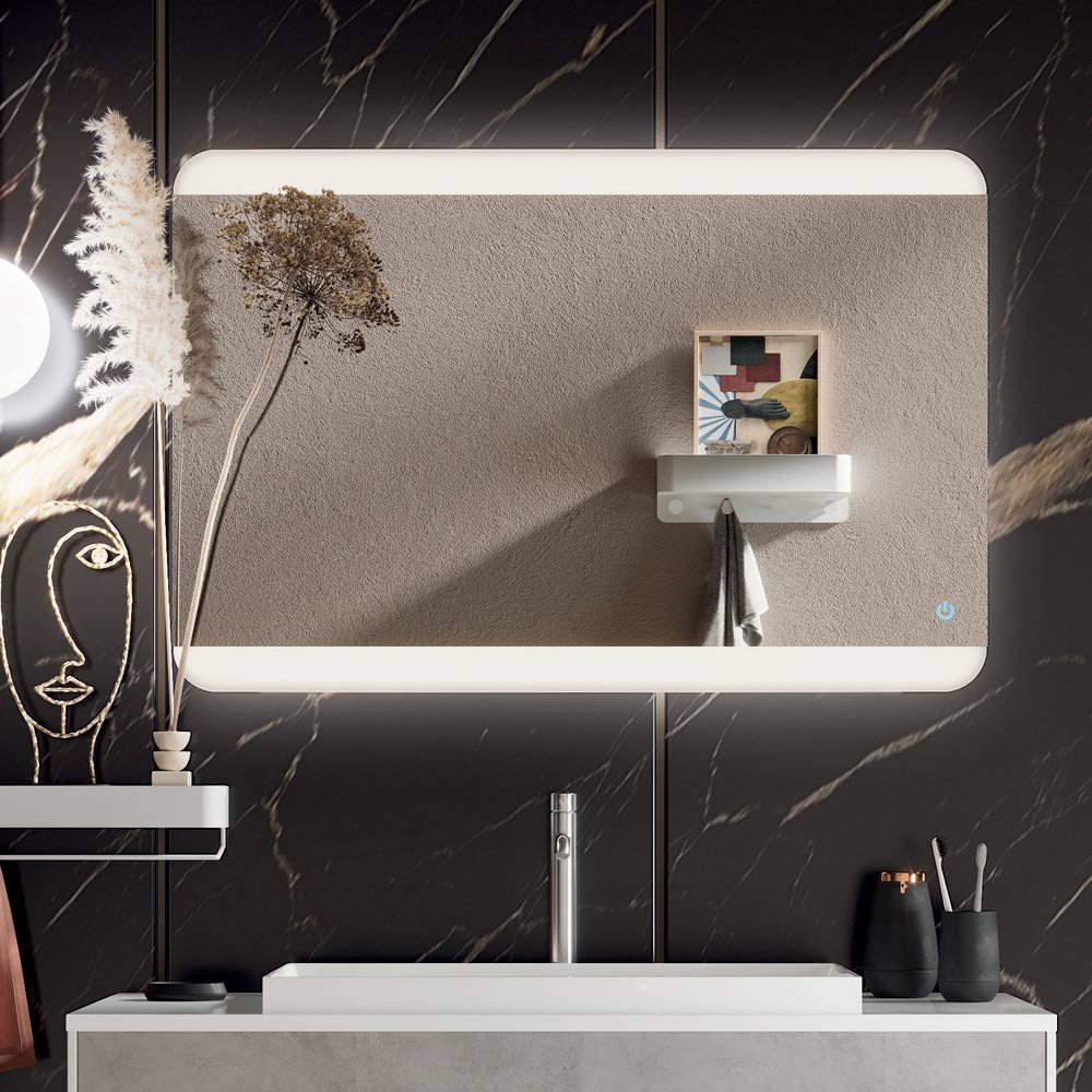 Composição de banheiro completa com pia de resina, espelho e base resistente a riscos Fabricado na Itália.