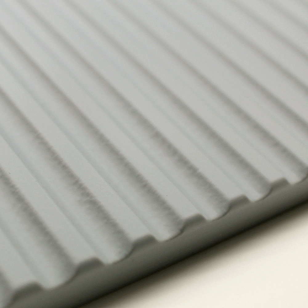 base com 1 gaveta em MDF cinza canelado e tampo em MDF branco,