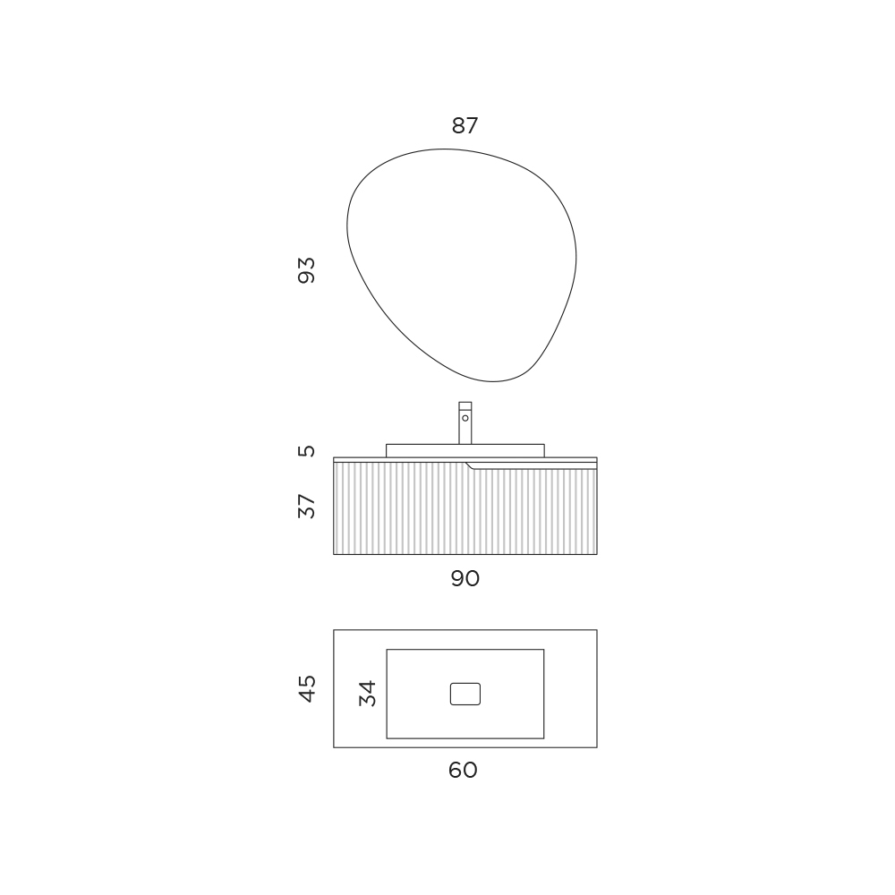 - Lavatório: Comprimento 60 x Profundidade 34 x Altura 15,7 cm