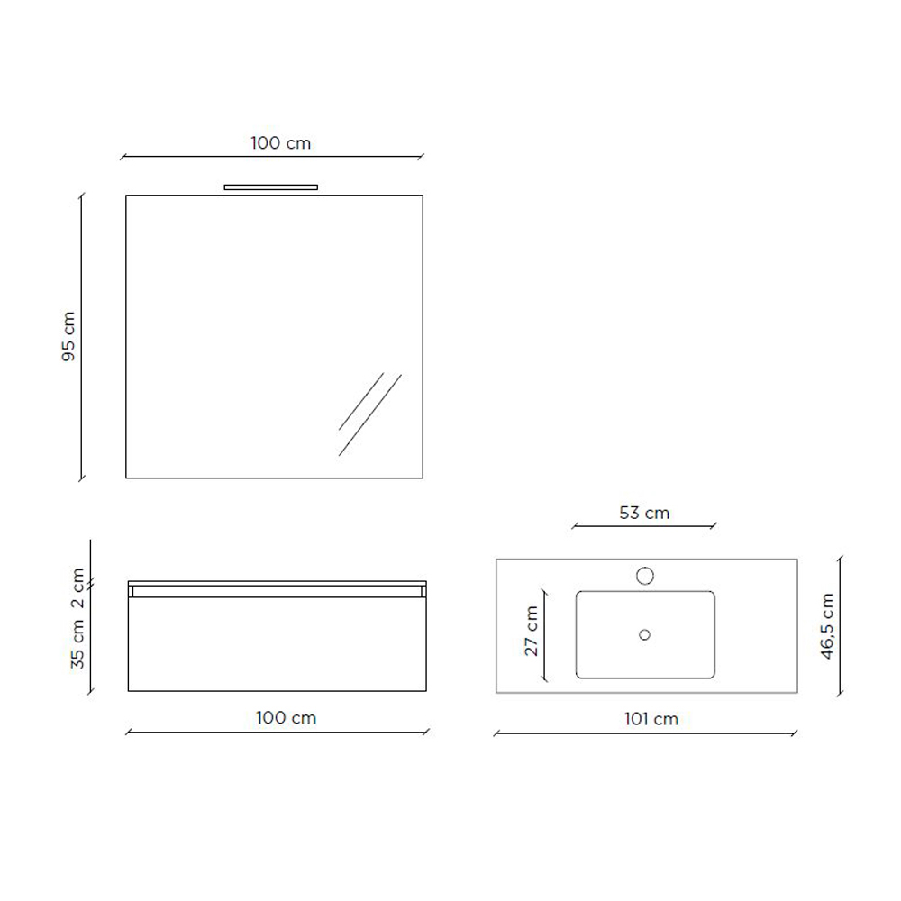 Base: C 100cm x P 46,5cm x A 37cm