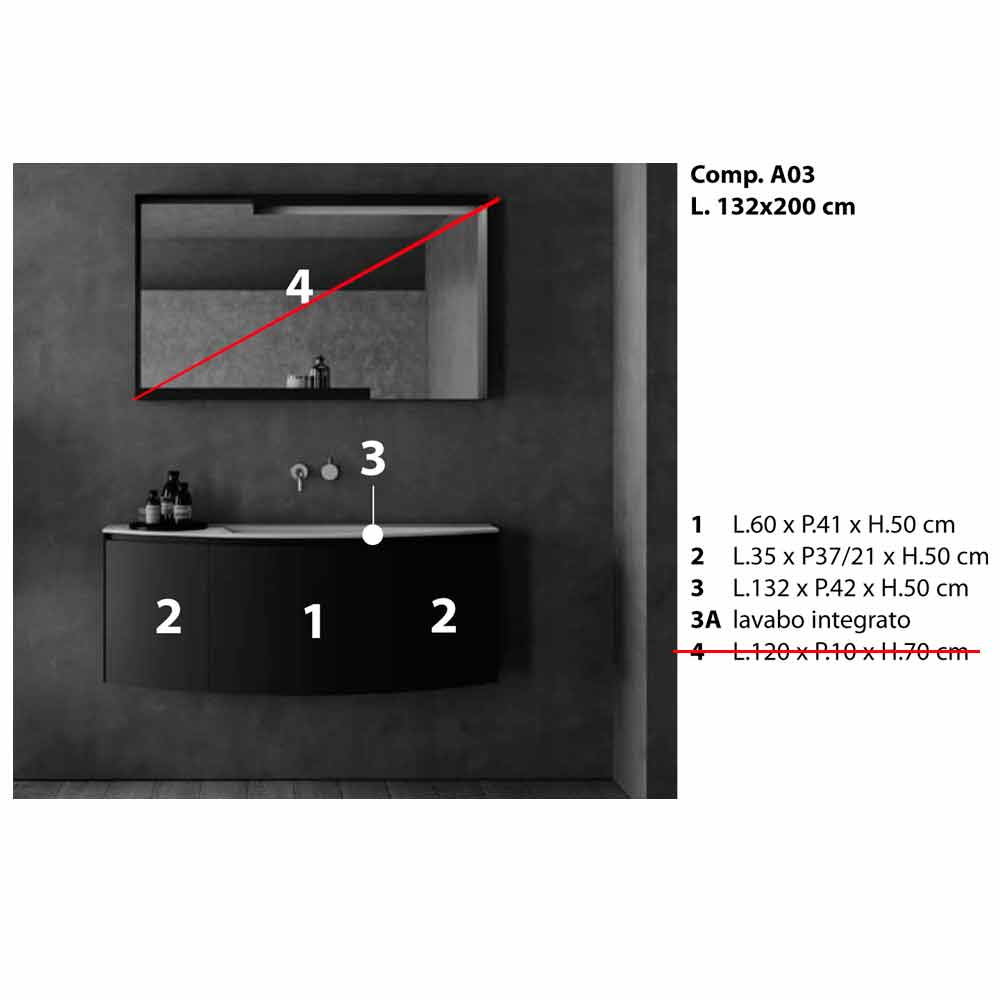 Composição de banheiro suspenso, curvilíneo e com design moderno, totalmente made in Italy.