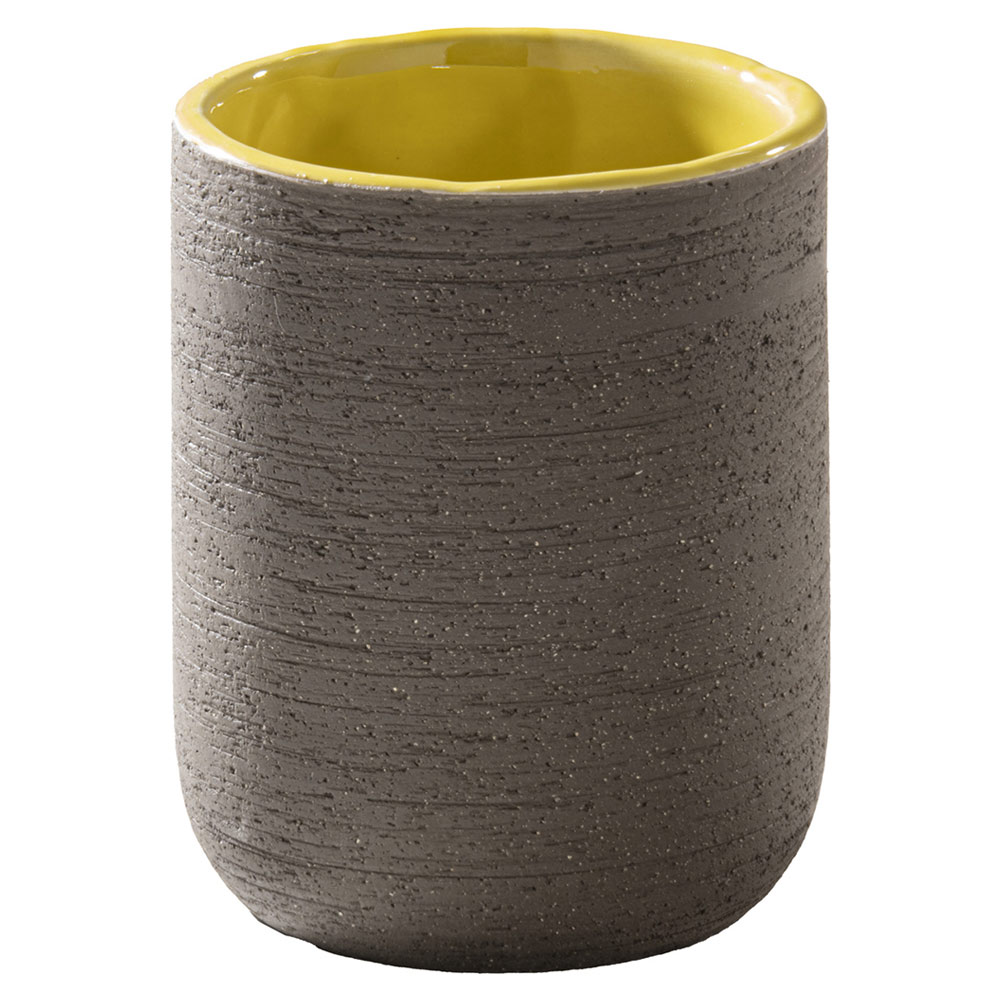armário de piso em teca natural reciclada com gaveta com aba em madeira de mogno pintada de amarelo e