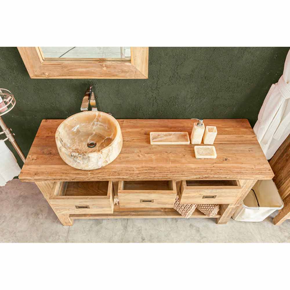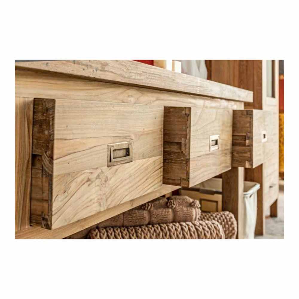 Armário com 3 gavetas e tampo baixo em Teca maciça.