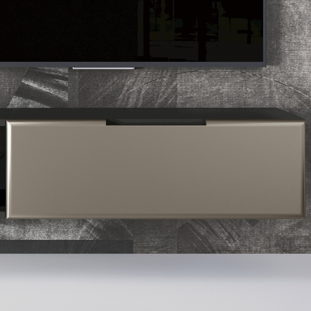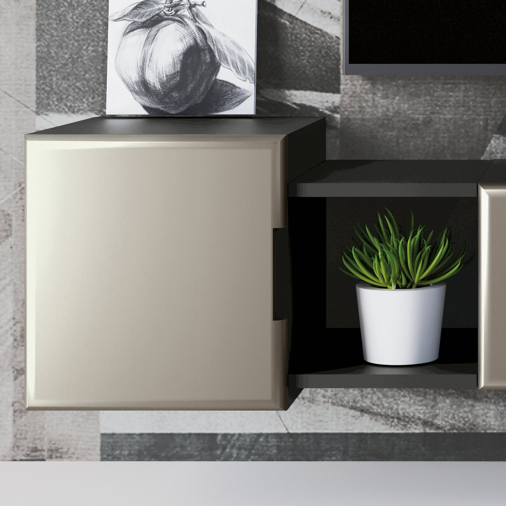 - móvel de parede com porta de abertura à esquerda e perfis sabão, acabamento NÍQUEL + CARBONO, corpo e frentes em MDF