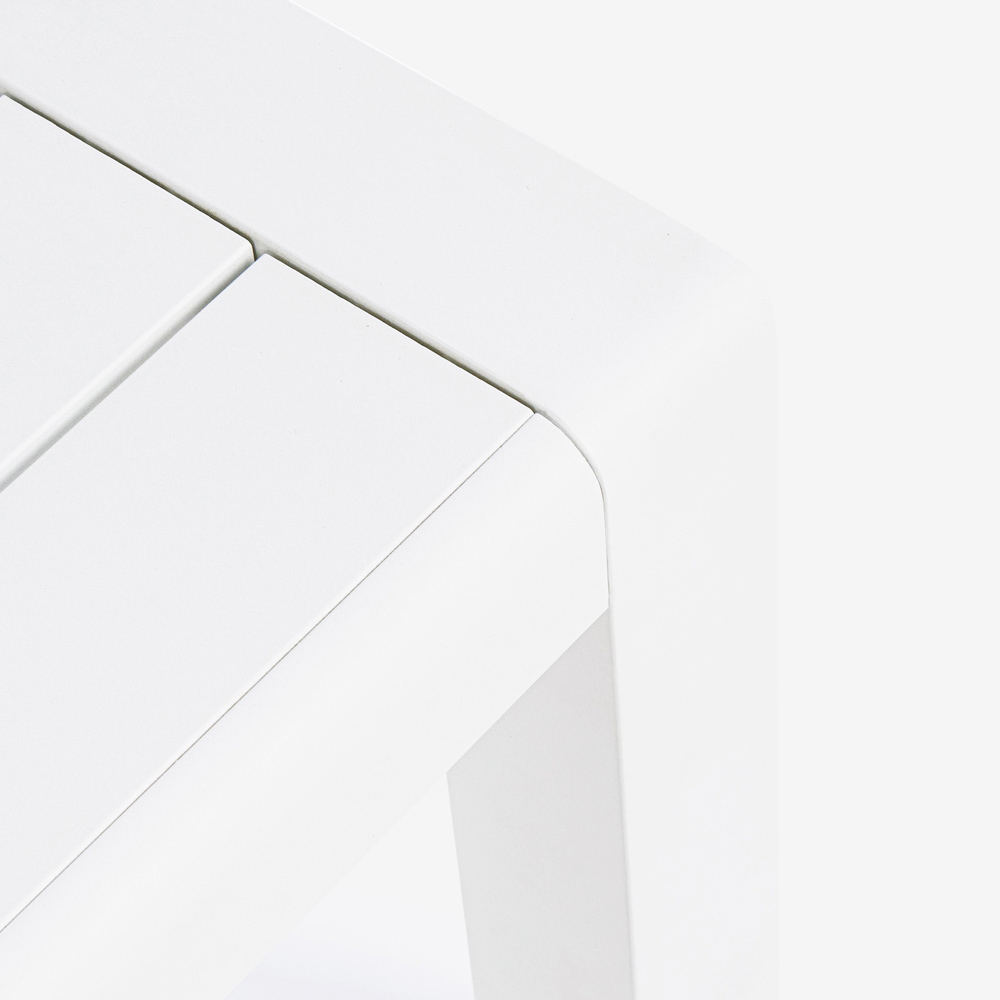 Estrutura em alumínio com revestimento em pó (poliéster). Almofadas removíveis com tecido Olefina (100% polipropileno).