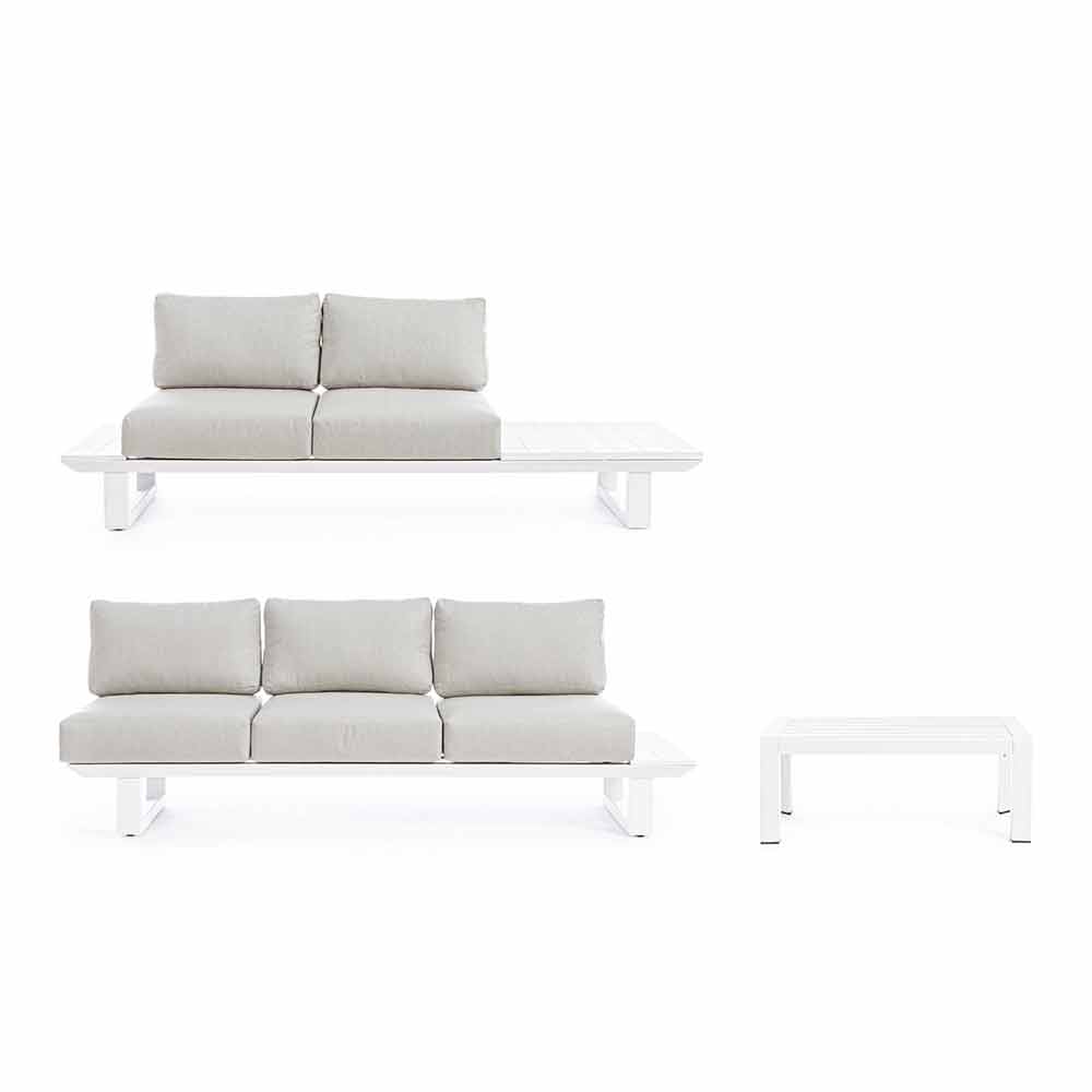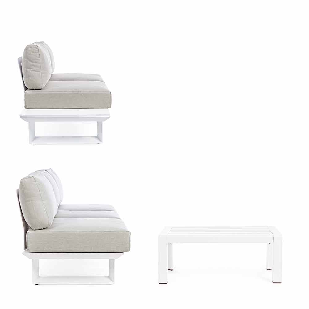 Composição para sala de estar exterior em alumínio com almofadas amovíveis, artigo de qualidade.