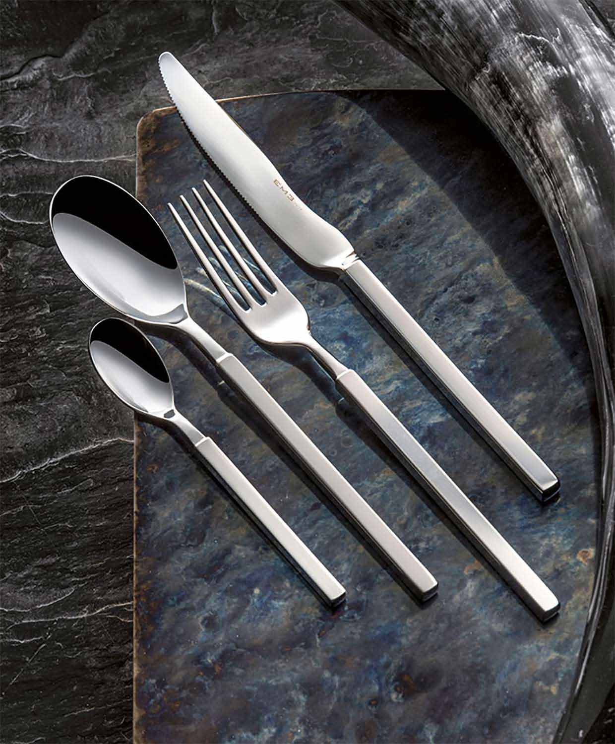 Talheres de aço inox polido ou jateado, design moderno made in Italy.