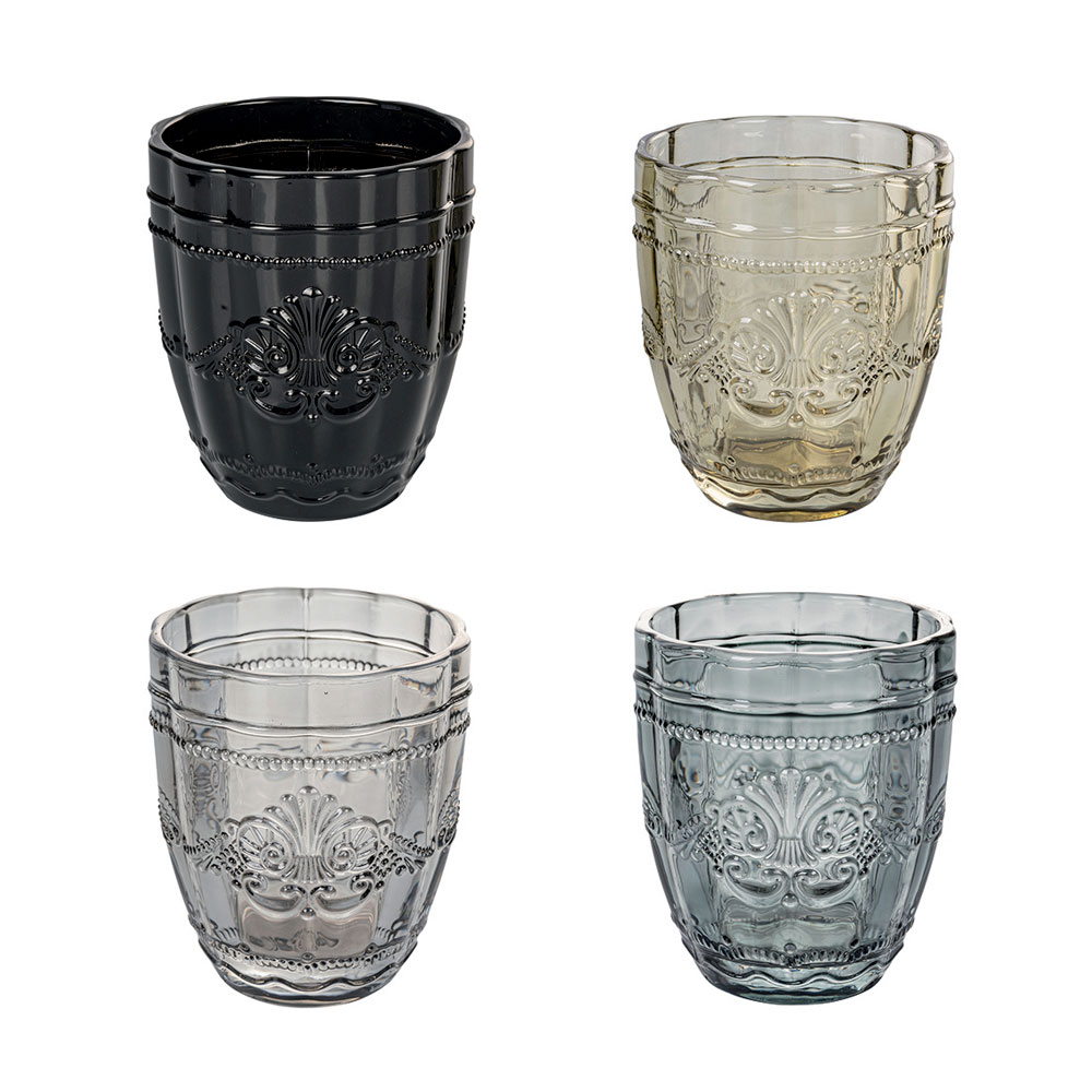 Este conjunto de 12 copos é um triunfo de luz e cor , com tons quentes que remetem às maravilhas da natureza e às paisagens outonais. Cada copo é uma pequena obra de arte que traz consigo o calor da cor. Gravados com padrões que evocam ornamentos florais de épocas passadas, estes copos acrescentam um toque de elegância clássica a qualquer mesa, celebrando a tradição do design .