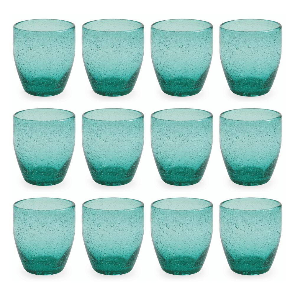 Copos de água em vidro soprado verde esmeralda, conjunto de 12 peças.