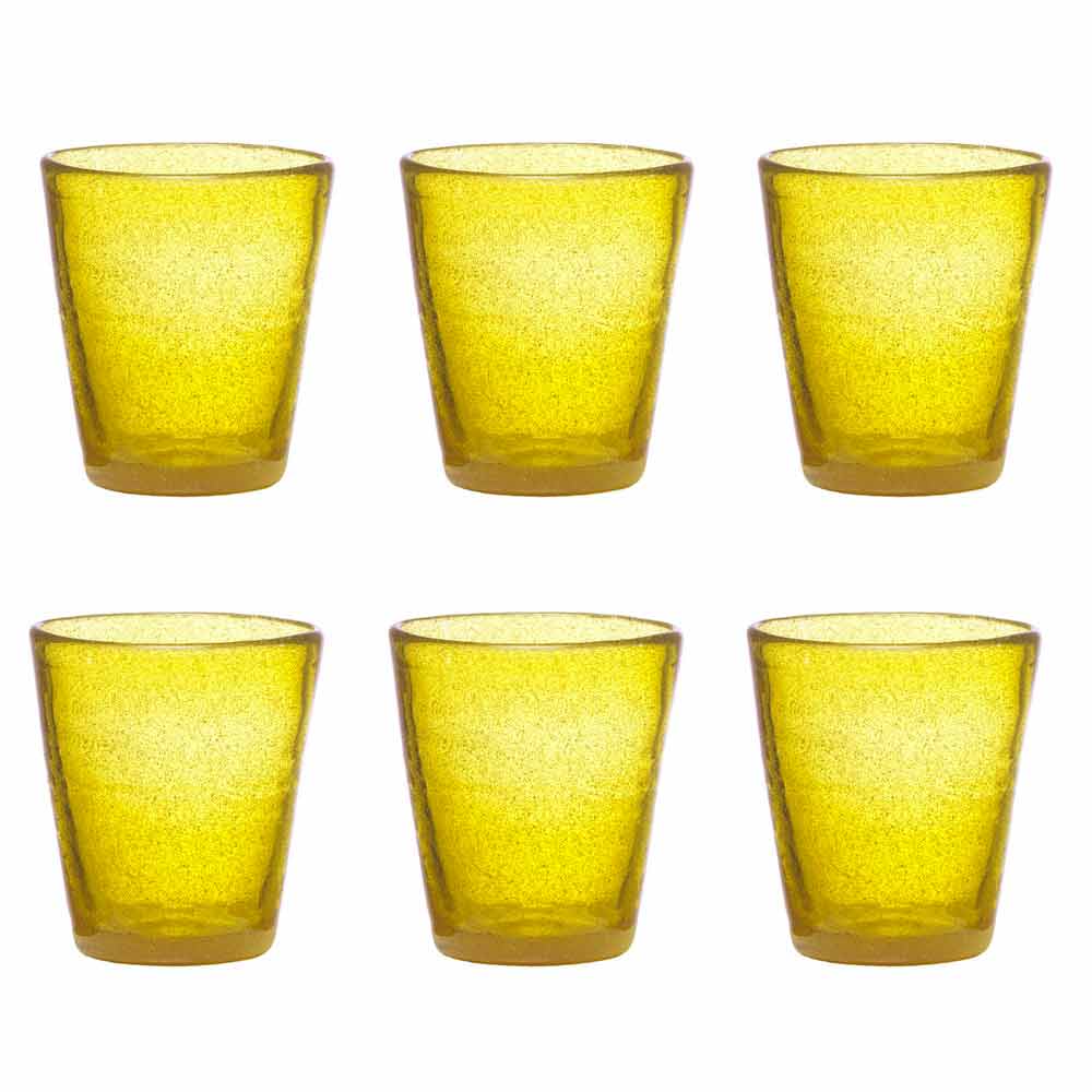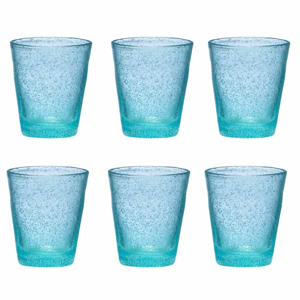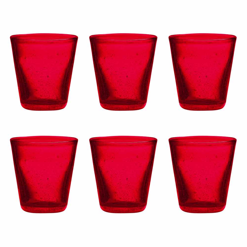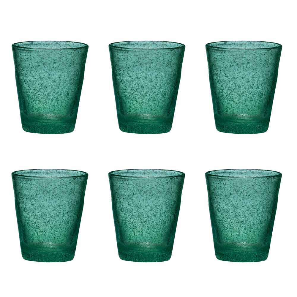12 copos coloridos para água ou bebida, feitos de vidro soprado e com um design moderno.