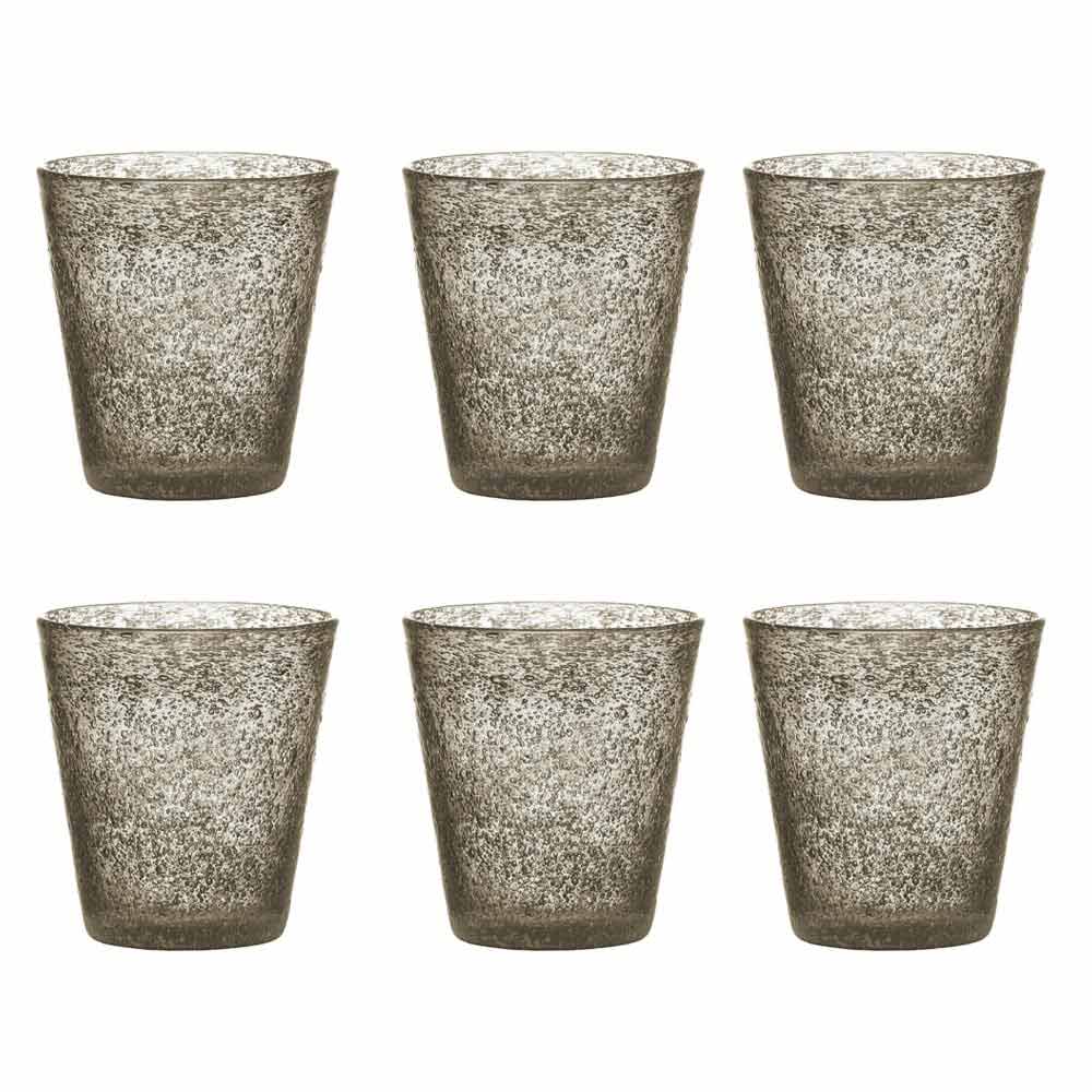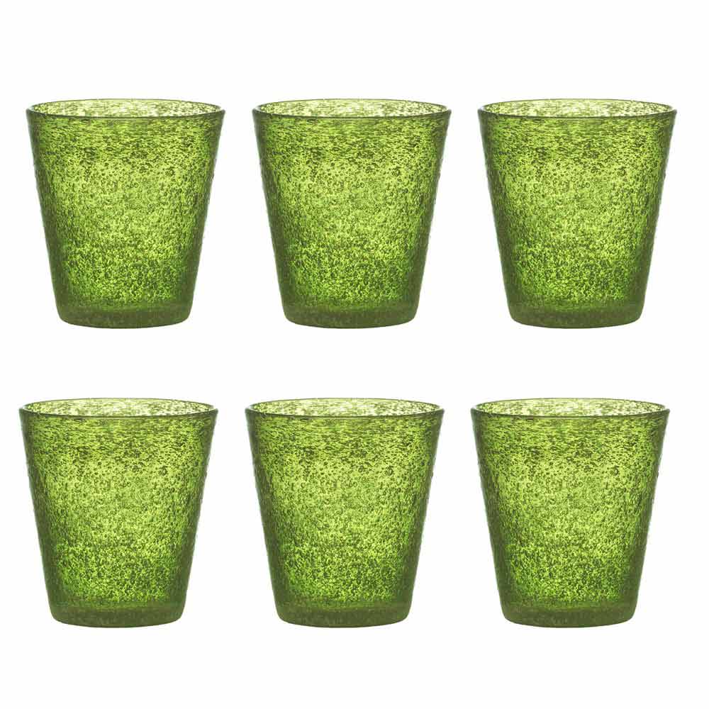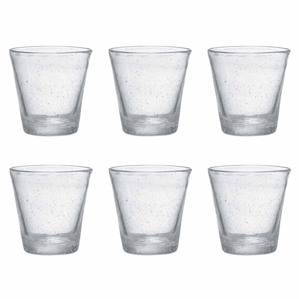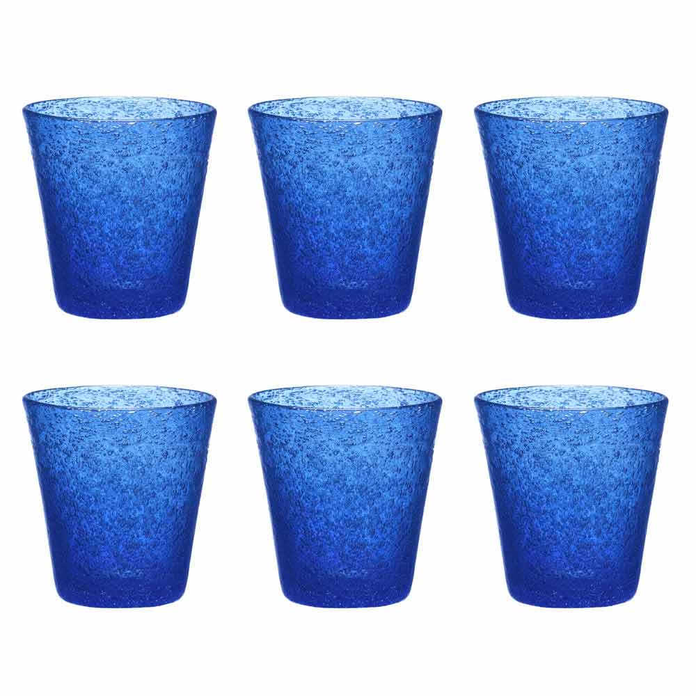 12 copos coloridos para água ou bebida, feitos de vidro soprado e com um design moderno.