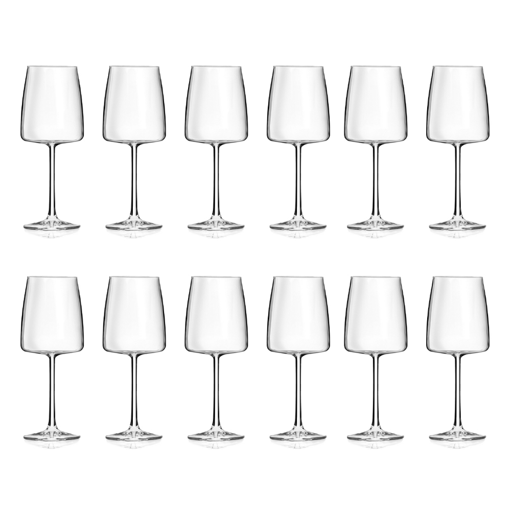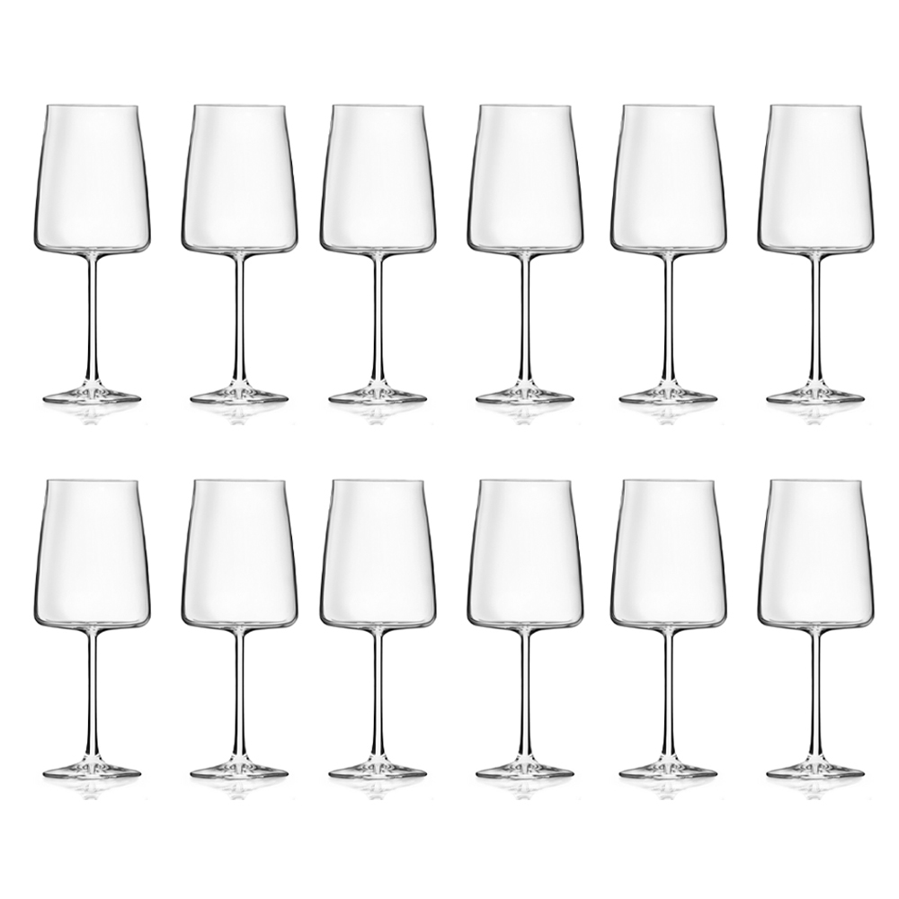 Copo de vinho de cristal ecológico mínimo definido 12 peças 3 tamanhos feito na Itália.