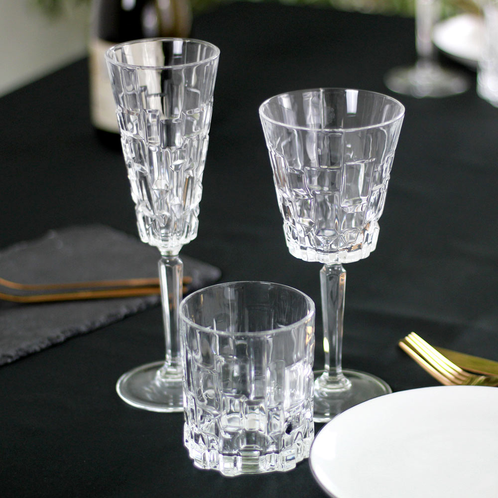 Os copos, com um estilo moderno e sofisticado, apresentam um padrão original de malha de quadrados interligados. Perfeitos para dar um toque de estilo único à sua mesa, eles combinam beleza, durabilidade e praticidade .