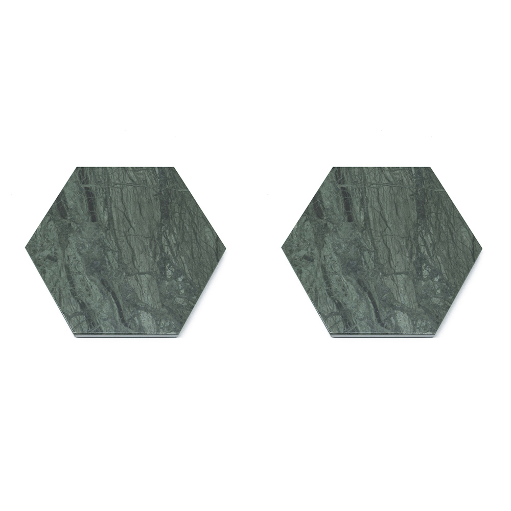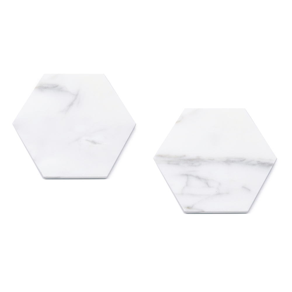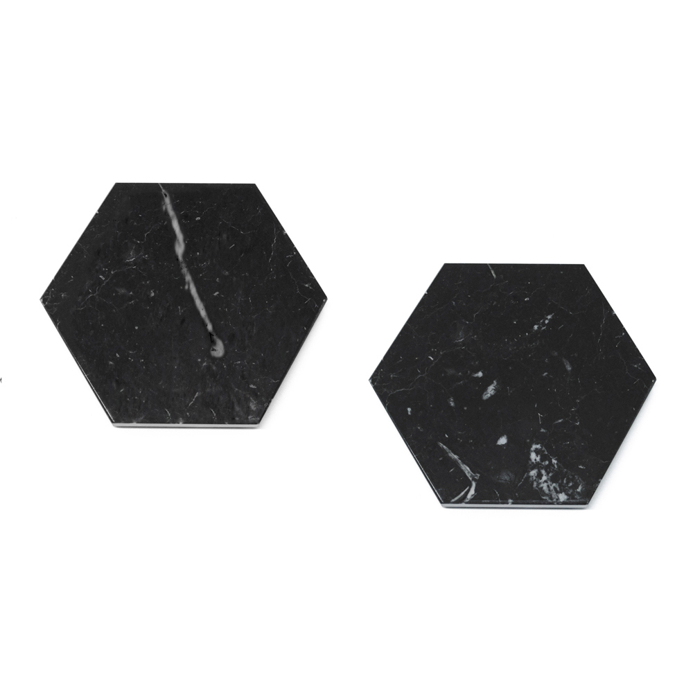 Estas bases para copos de mármore são um exemplo de sofisticação funcional para a casa contemporânea. Recortadas em formato hexagonal, um prazer geométrico para os olhos, e embelezadas com os veios naturais e em constante mudança do mármore, estas bases para copos não são apenas práticas, mas são verdadeiros toques de elegância para a sua mesa.