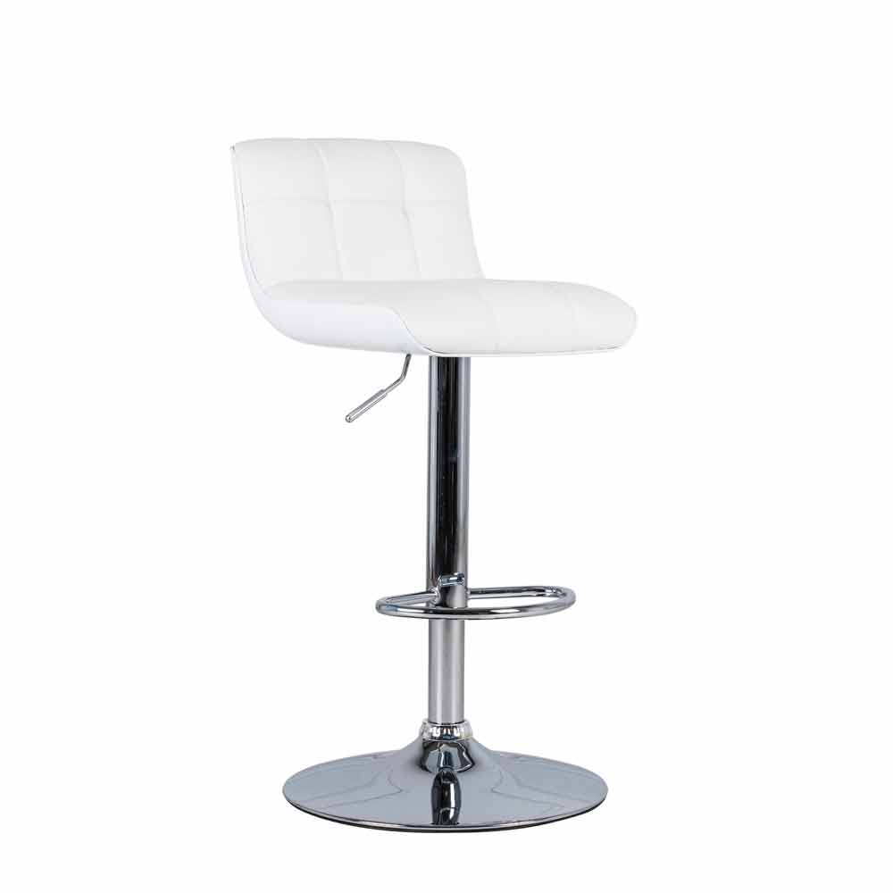 Banquetas com base em metal cromado e assento acolchoado em pvc. Disponível nas seguintes cores: branco, cinza, vermelho, cinza pomba.