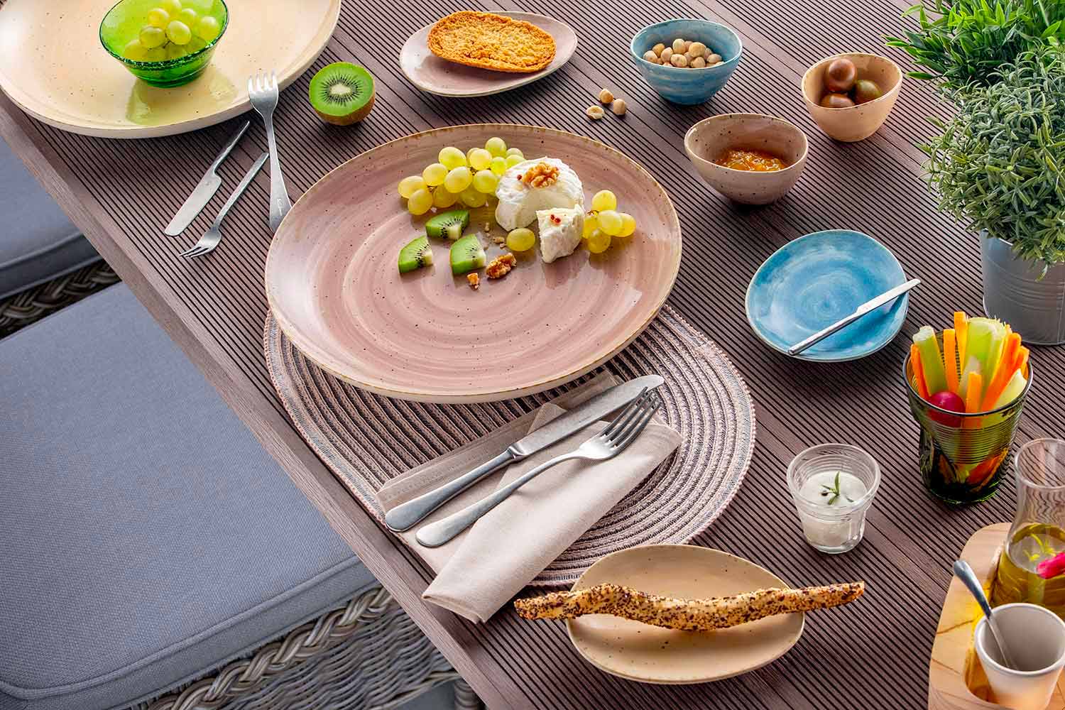 - Design : é uma linha ecológica, com cores vivas e brilhantes , capaz de se casar com todas as ocasiões e ser usada em todas as refeições do dia. O design moderno e elegante dá vida a artigos práticos e funcionais, extremamente versáteis.