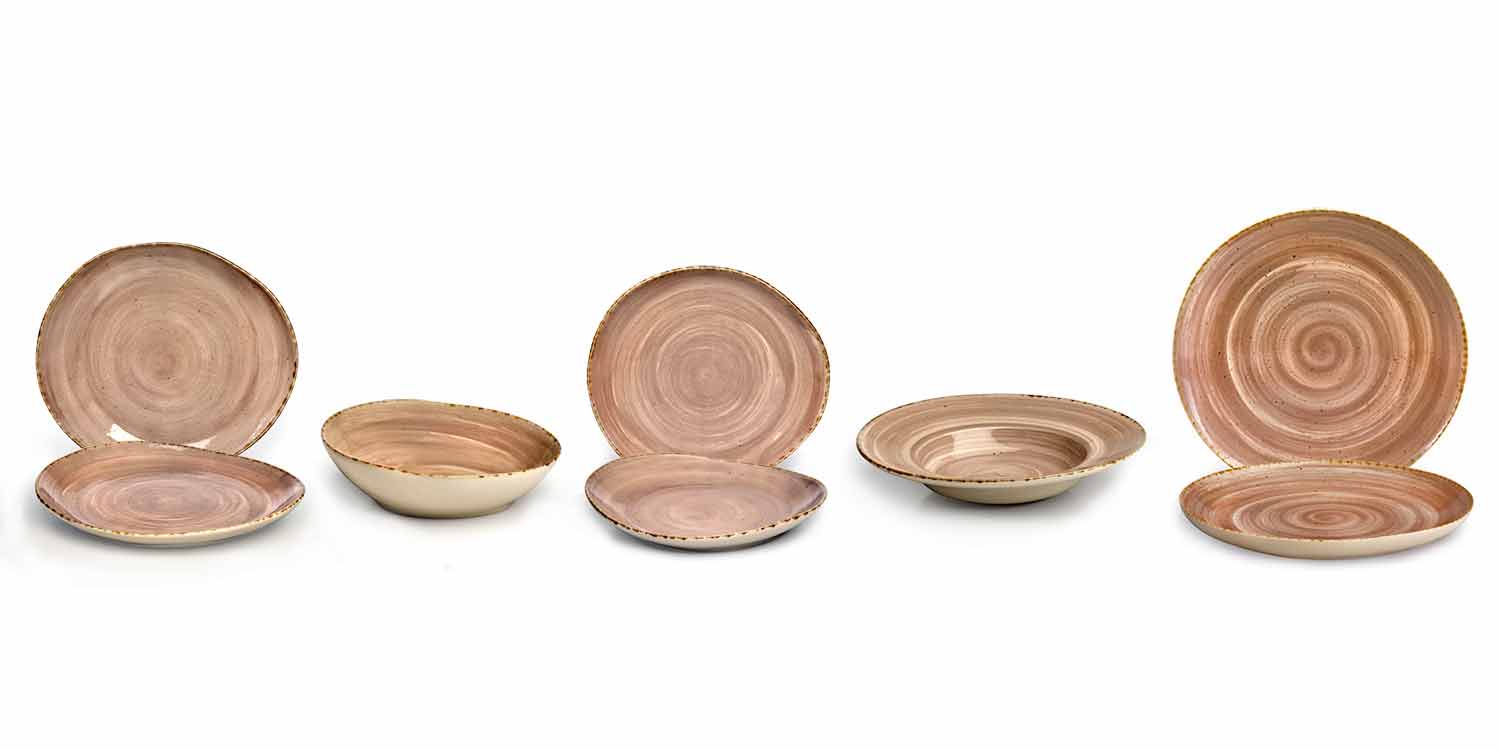 - Originalidade : as formas irregulares, as decorações com pinceladas imprecisas e com um efeito manchado, acabado e pintado à mão e com a borda antiquada, destacam o estilo rústico e terroso da coleção. Toda diferença entre uma peça e outra deve ser considerada como uma característica adicional de valor e personalidade, tornando cada peça única.